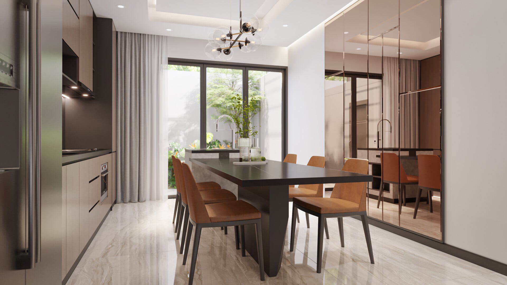 • Hệ cửa kính kịch trần: Được bố trí chiến lược tại phòng bếp, phòng ngủ chính... giúp ánh sáng len lỏi vào từng ngách nhỏ của căn nhà.