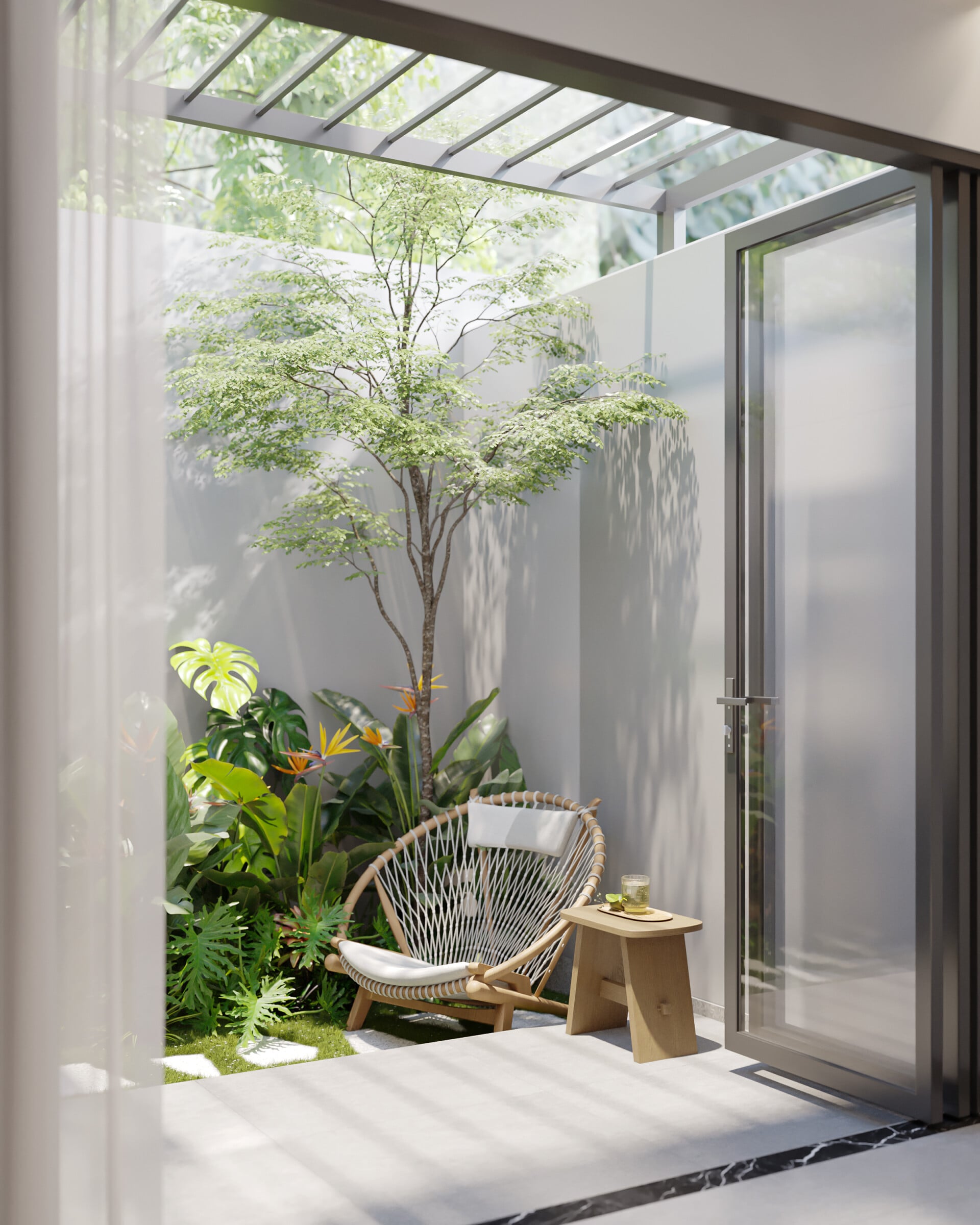 • Tầm nhìn xanh mát: Từ bất kỳ đâu trong nhà, gia chủ đều có thể mở rộng tầm mắt nhìn ra những mảng xanh bên ngoài, tạo cảm giác gần gũi với thiên nhiên, giúp giảm bớt sự ngột ngạt của phố thị.