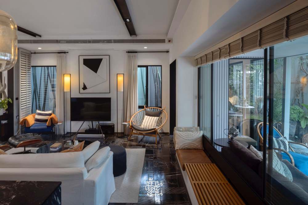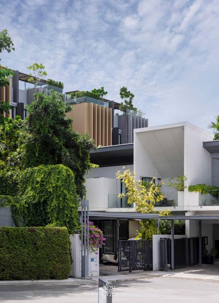 Ngôi nhà này nằm trong một khu nhà phố tại Bangna, nơi phần lớn các căn đều có hình thức giống nhau: khối nhà vuông vức, sơn trắng, mang phong cách hiện đại đơn giản. Nhìn từ bên ngoài, rất khó để nhận ra sự khác biệt. Thế nhưng, phía sau lớp vỏ “đồng phục” ấy lại là một không gian sống được tổ chức lại hoàn toàn, phản ánh rõ cá tính và cách sống của gia chủ - một kiến trúc sư đồng thời là nhà thiết kế nội thất.