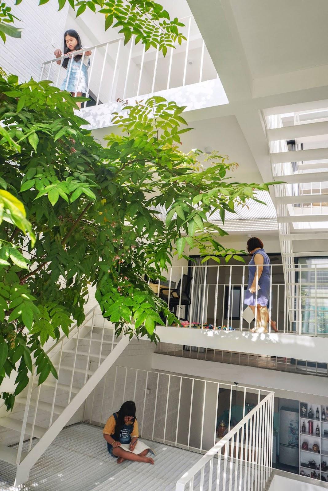 10. Nhà Hộp Rỗng - Thiết kế lệch sàn với lưới thép thông tầng cho trẻ vui chơi