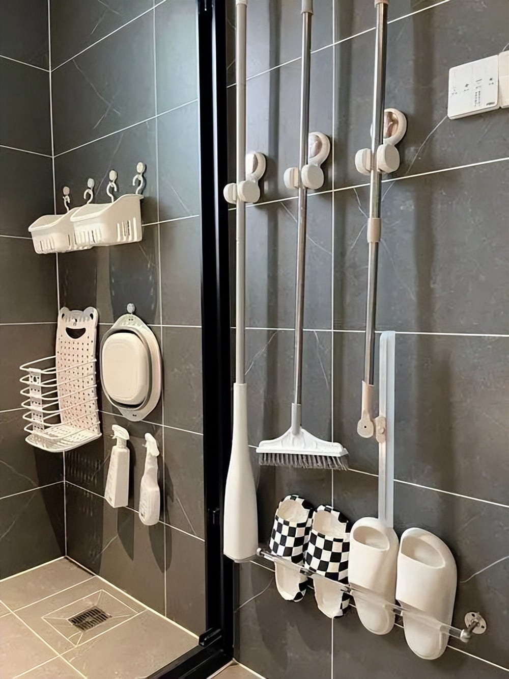Cách xử lý đúng: Sau khi tắm, nên treo dép lên giá để nước chảy hết. Người dùng cuối cùng trong ngày nên mang dép ra phơi ở nơi khô thoáng. Sử dụng giá treo dép giúp sàn WC luôn khô ráo và gọn gàng.
