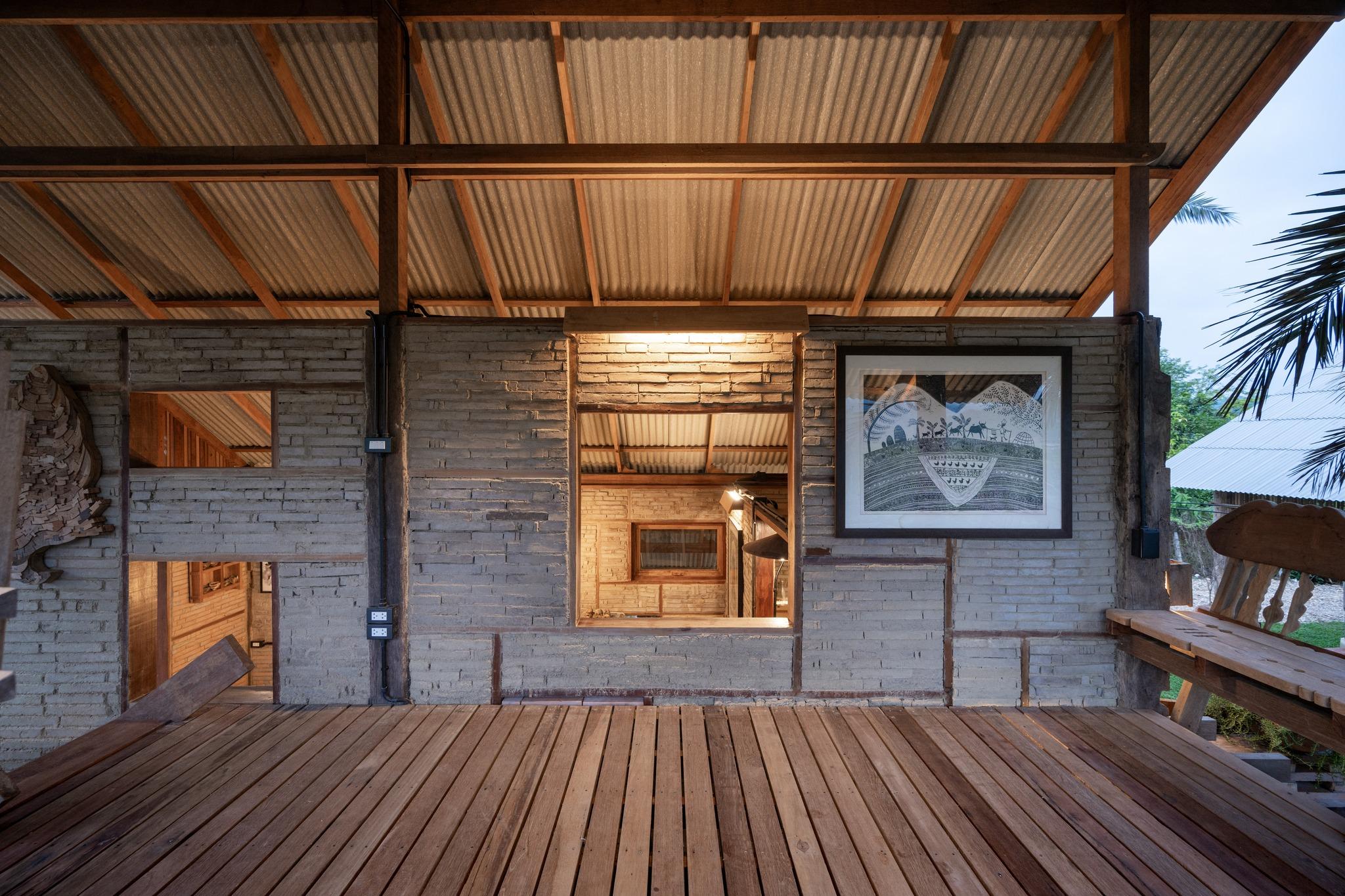 Trọng tâm của Cha Arnon Farm nằm ở cách dùng vật liệu. Gỗ cũ được chọn không phải vì “cổ” cho đẹp, mà vì nó mang theo bề mặt, thớ gỗ, vết xước và màu thời gian. Khi đặt cạnh đất và đá, những vật liệu vốn rất bản địa, công trình tạo ra cảm giác thân thuộc, như một nơi chốn thuộc về vùng này từ trước đó. Vật liệu đương đại vẫn xuất hiện, nhưng được chọn lọc để đứng cạnh vật liệu truyền thống mà không làm mất đi tinh thần mộc mạc.