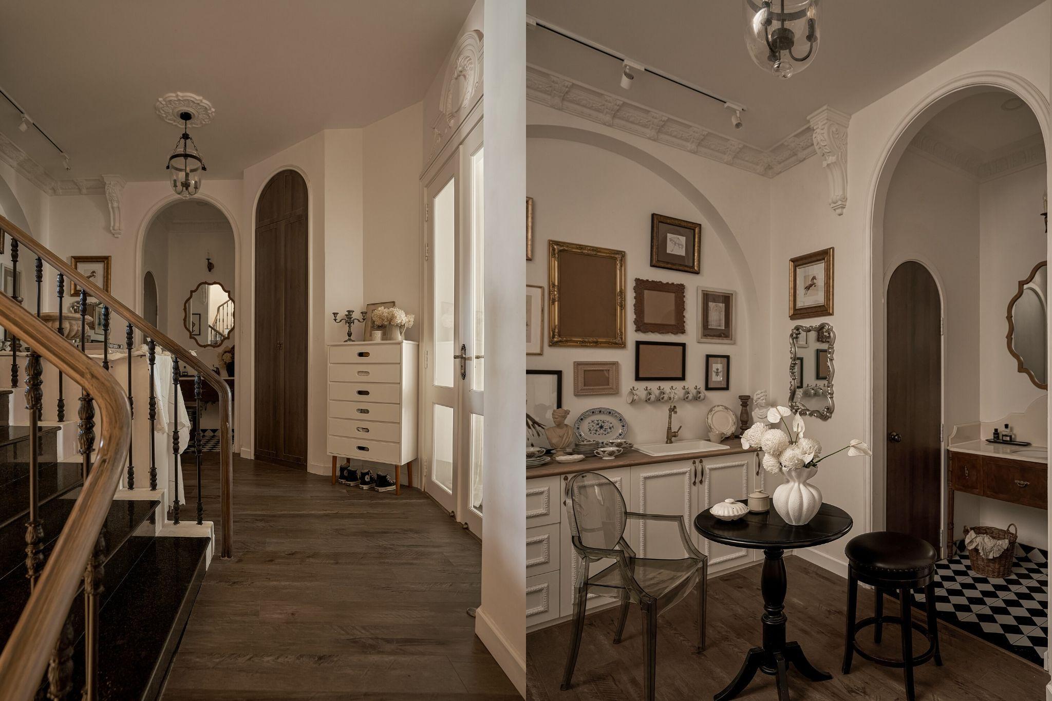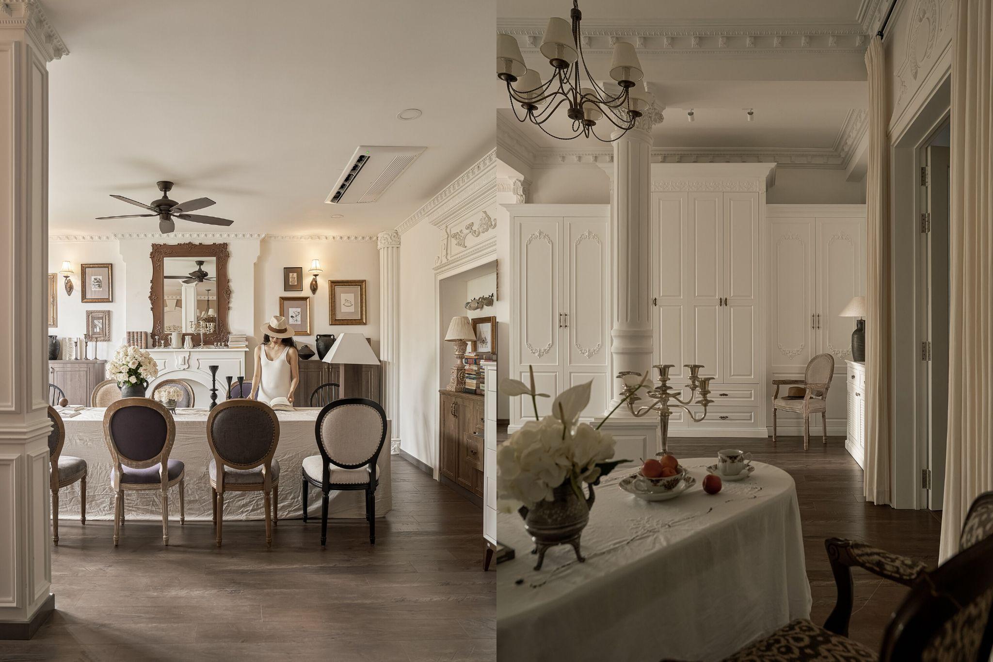 Dưới nhãn quan của những người gắn bó lâu năm với ngành thiết kế, họ không chỉ sửa sang, mà là đang thực hiện một cuộc thay da đổi thịt cho tổ ấm. Những hệ cầu thang cũ, những nhịp sàn lệch tầng đầy ngẫu hứng vốn là đặc trưng của kiến trúc xưa, nay trở thành khung xương vững chãi để chị Len thêu dệt lên đó nét kiêu kỳ của phong cách cổ điển Châu Âu. Đó là sự giao thoa tinh tế giữa cái tĩnh lặng của quá khứ và sự rực rỡ của hiện tại, nơi mỗi đường nét phào chỉ hay tỷ lệ kiến trúc đều được cân nhắc kỹ nhằm đánh thức một luồng sinh khí mới cho ngôi nhà.