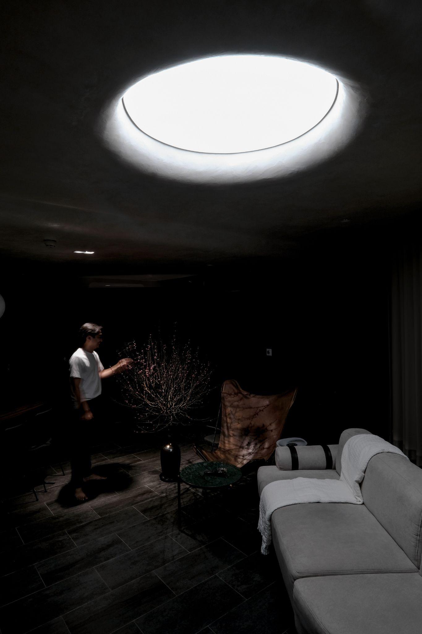 Trần lõm chiếu sáng gián tiếp như một “vầng trăng” nội thất, cân bằng phần âm – dương trong trải nghiệm sống