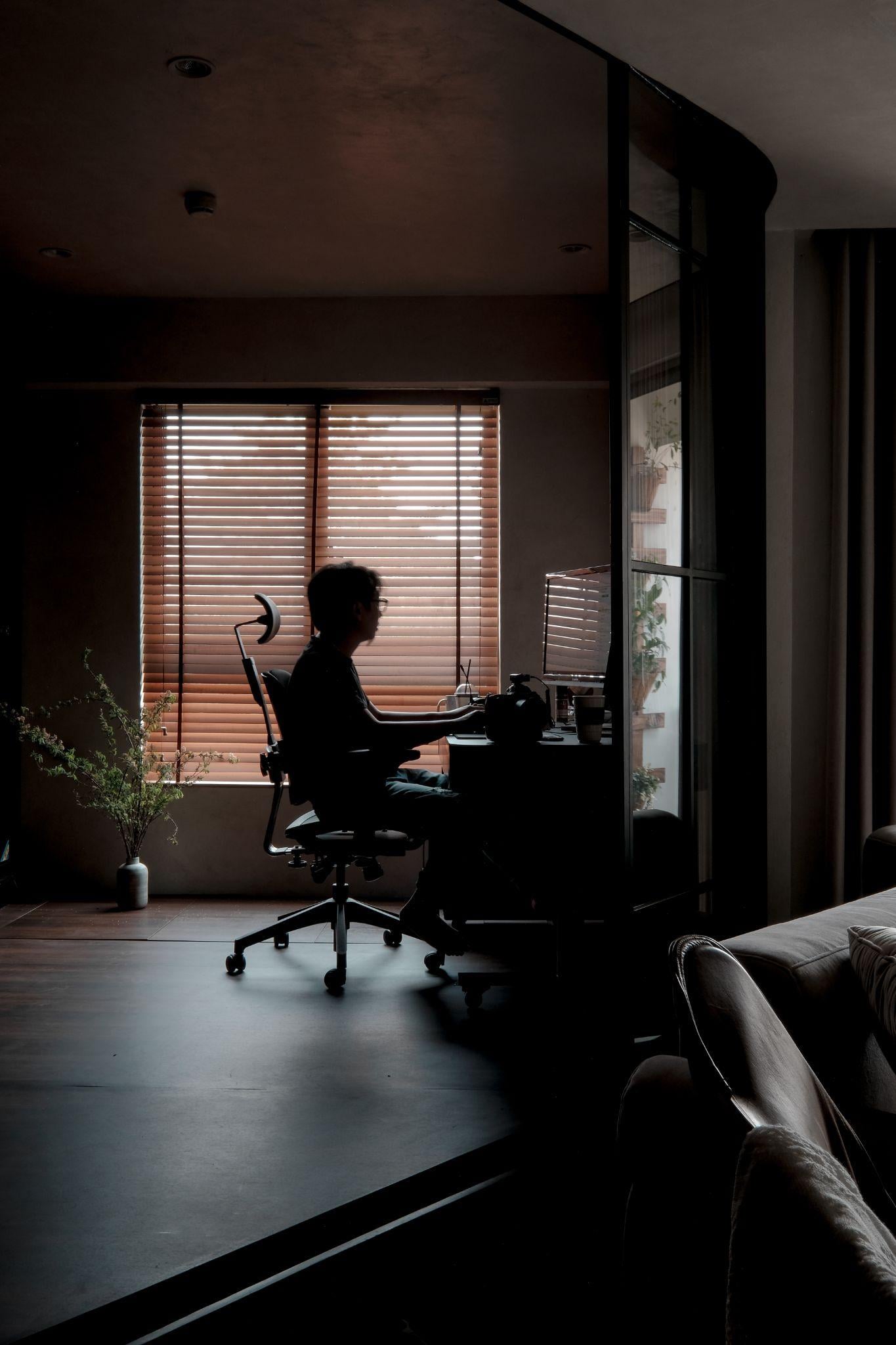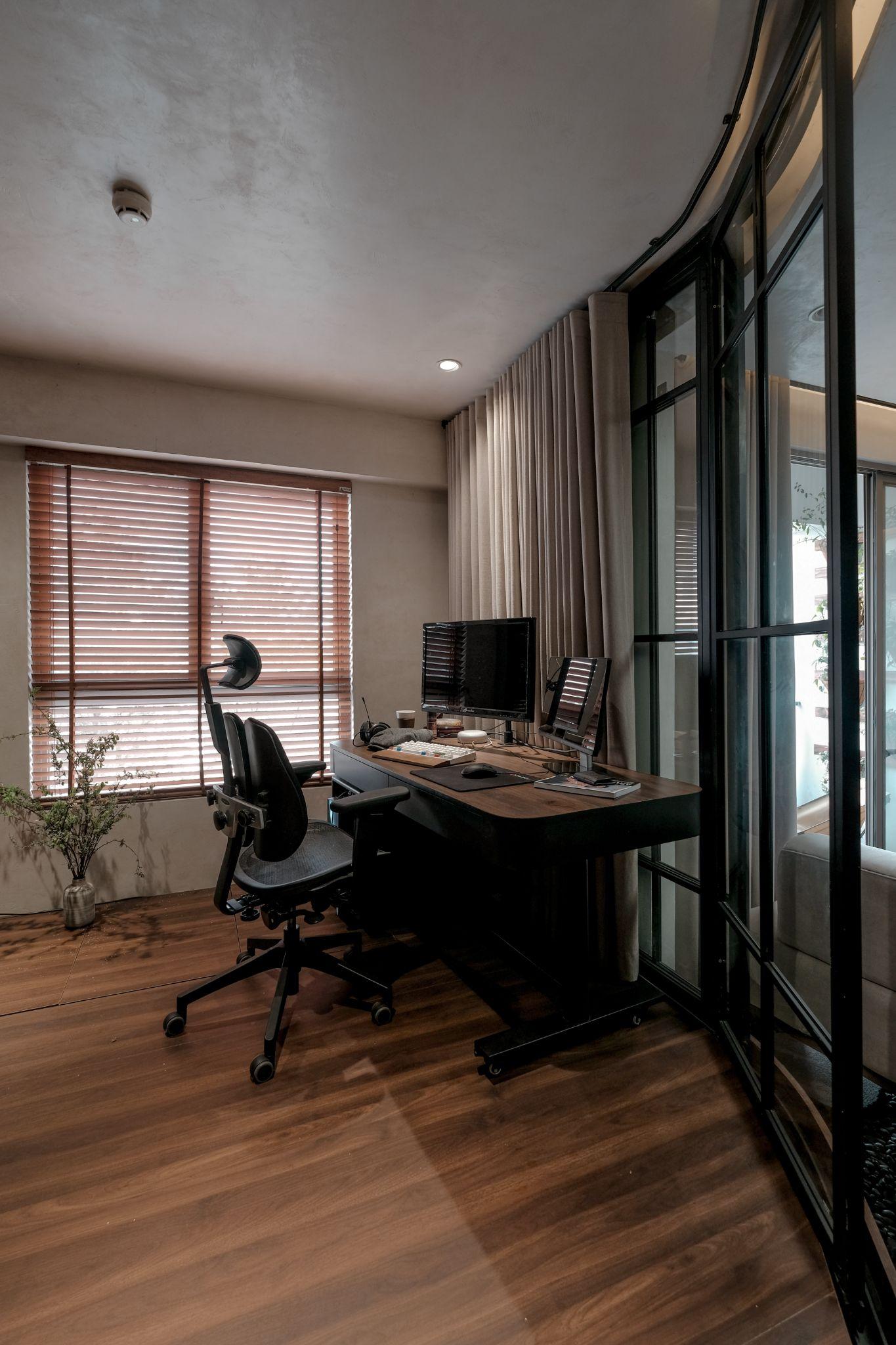Một góc làm việc yên tĩnh – nơi ánh sáng hắt qua rèm gỗ như vẽ từng khoảnh khắc trong ngày