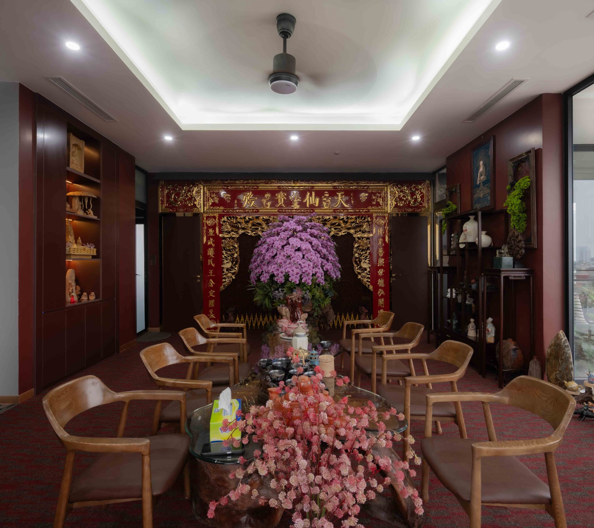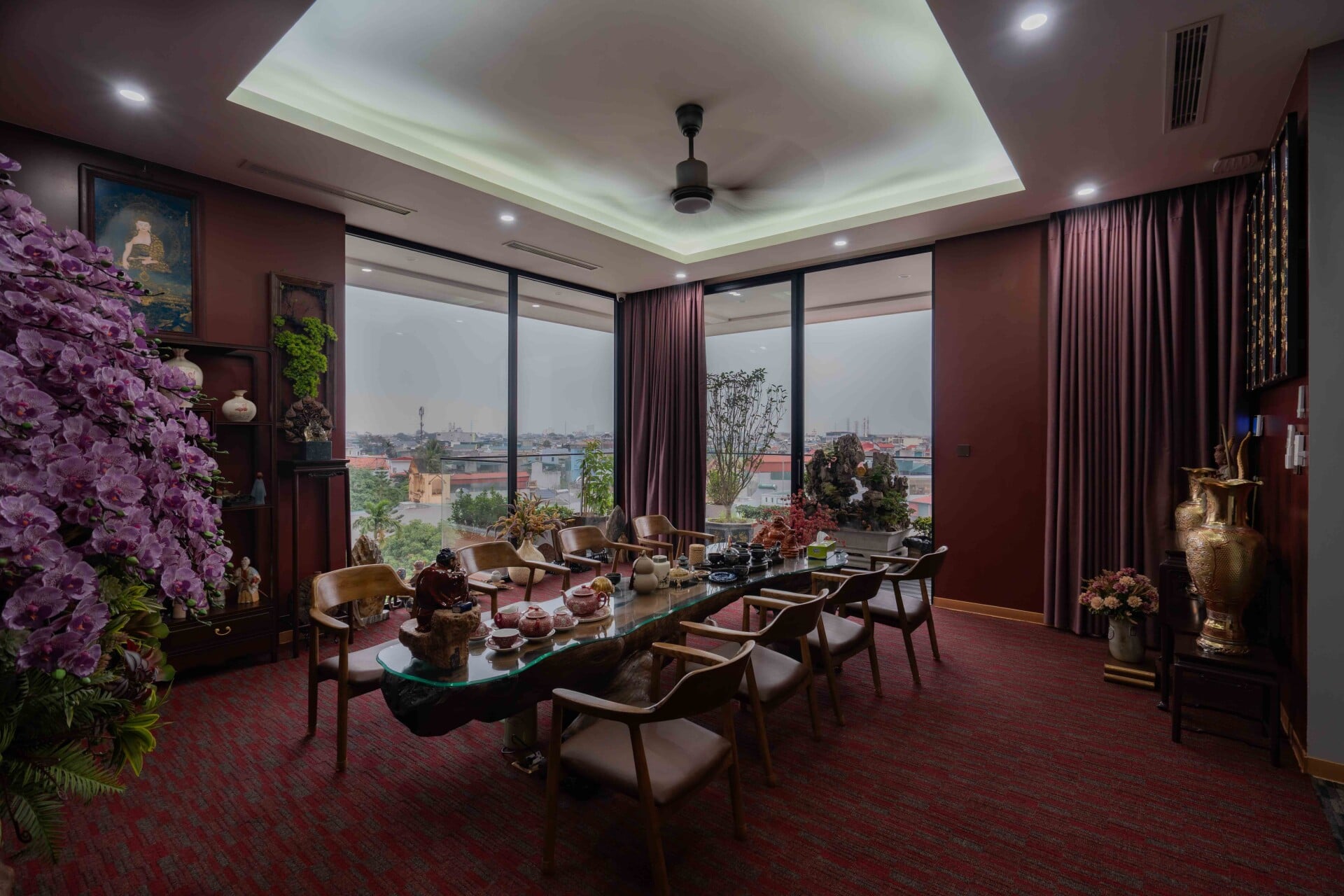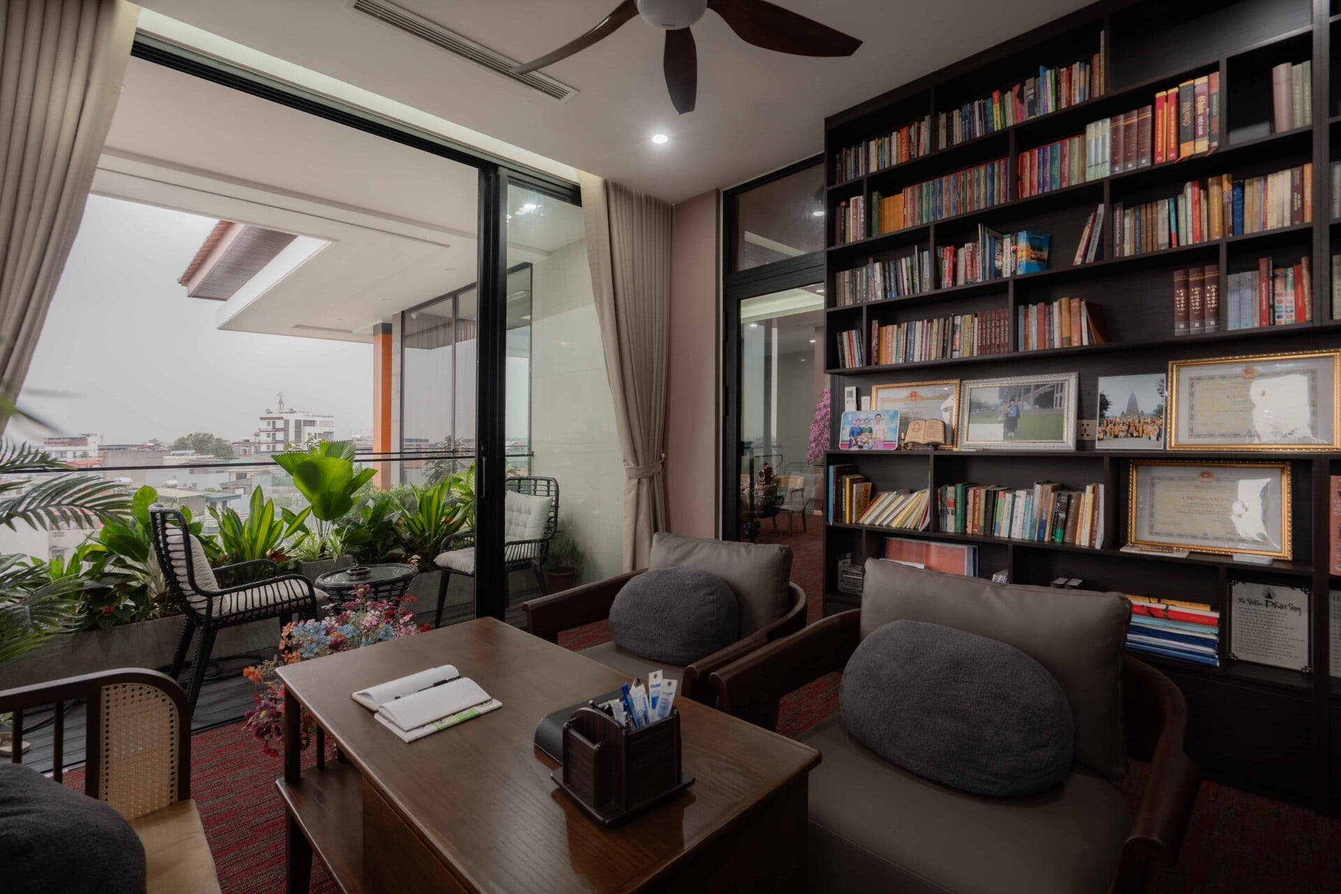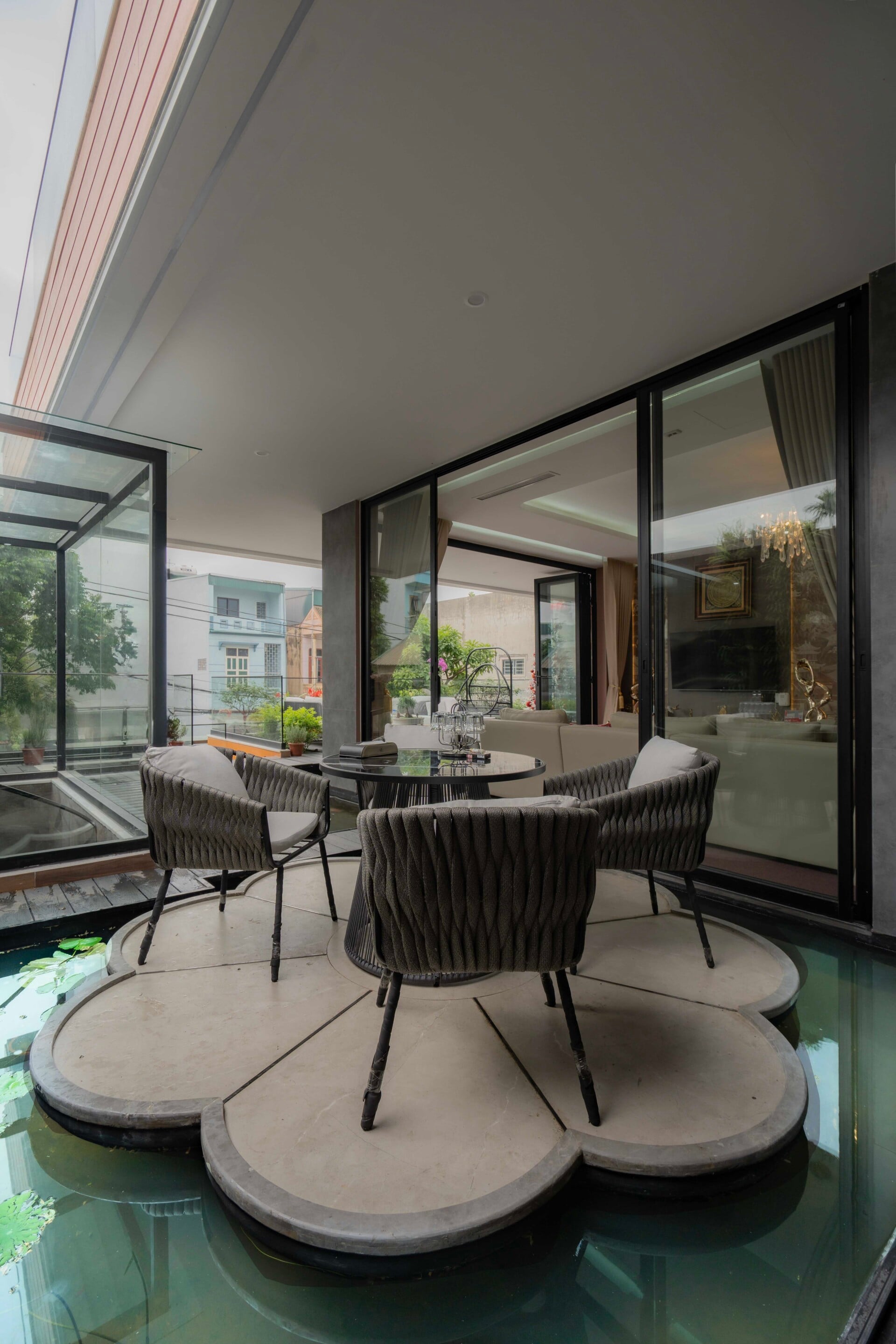 Hơi thở của đời sống và văn hóa bản địa xứ Thanh được các kiến trúc sư trân trọng và chuyển hóa một cách tinh tế vào những không gian sinh hoạt chung như phòng trà, khu thờ và trục giao thông đứng, tạo nên những "điểm chạm" giao thoa để các thế hệ trong gia đình có thể gặp gỡ, chia sẻ và duy trì nhịp sống truyền thống. Sự hiện diện của ánh sáng tự nhiên, cây xanh và mặt nước được kiểm soát một cách chủ đích, hòa quyện cùng bảng màu trầm và vật liệu thô mộc, mang lại cảm giác bình yên, quen thuộc nhưng vẫn đậm chất đương đại.