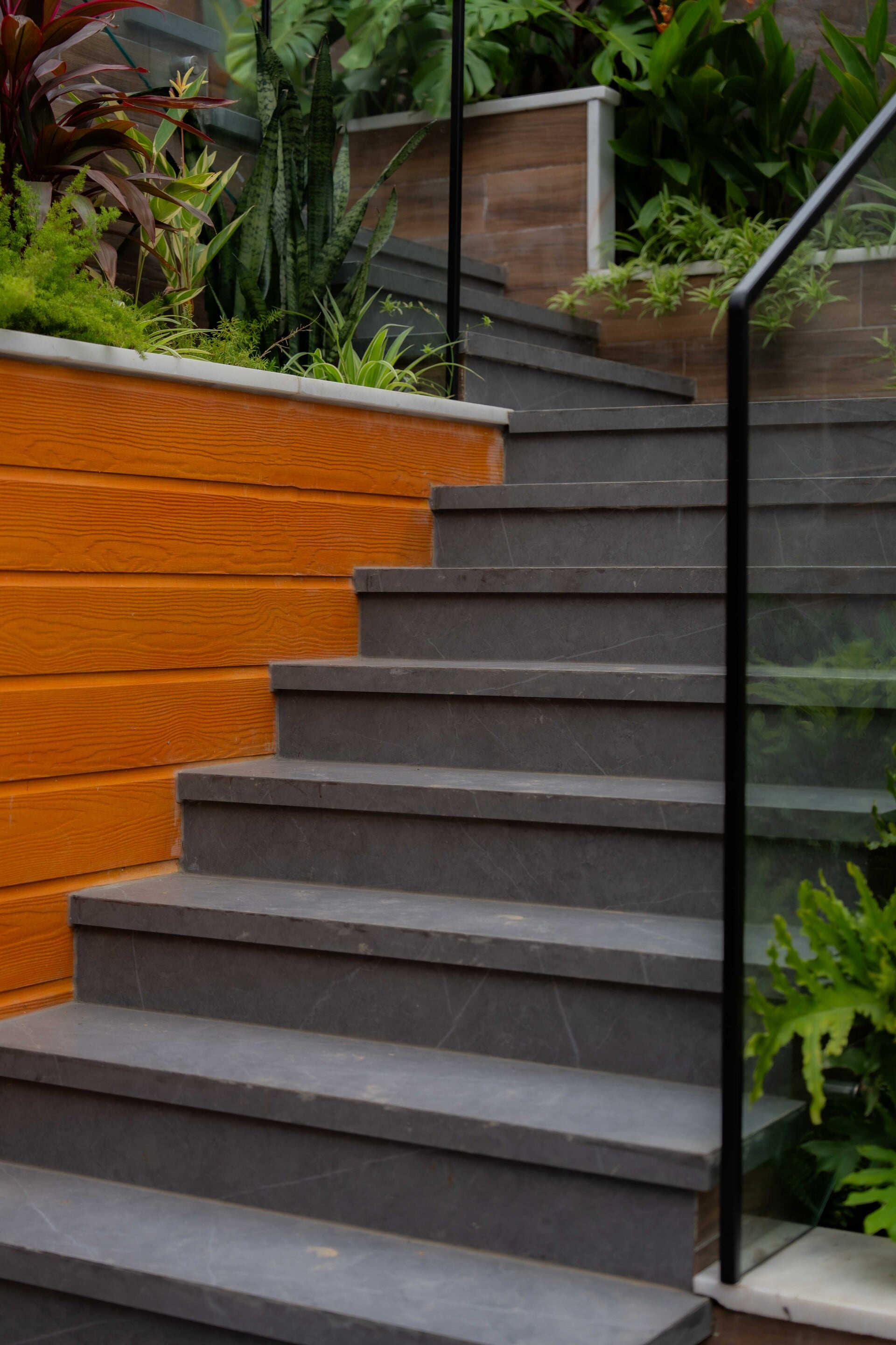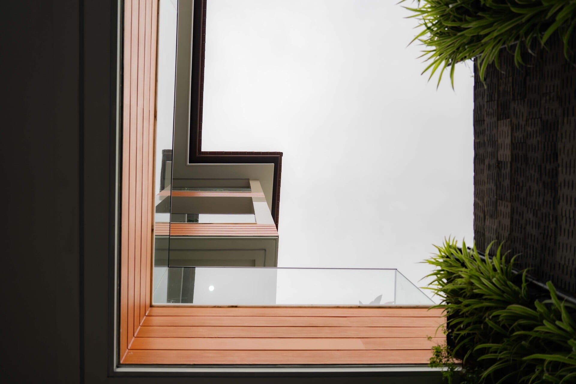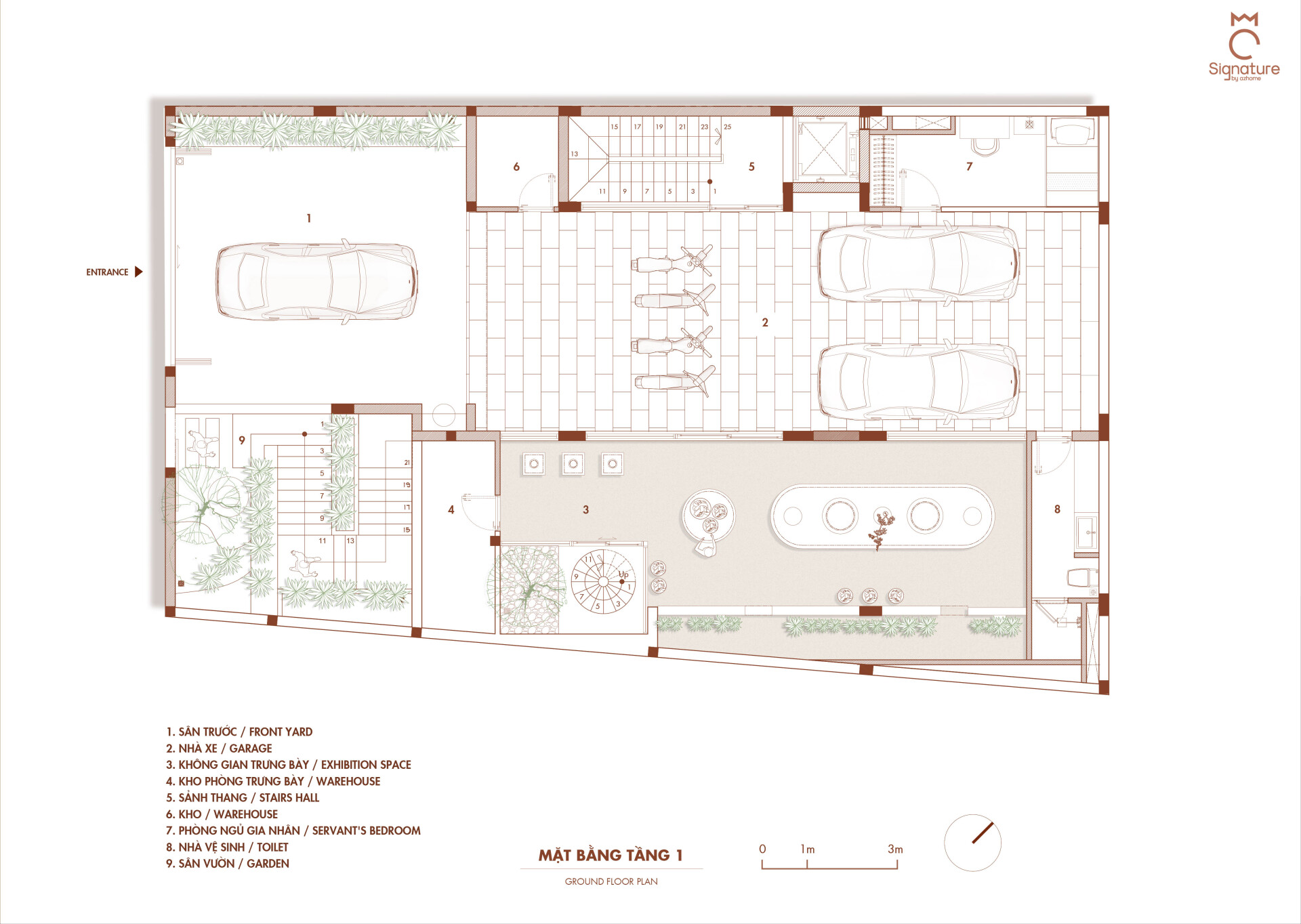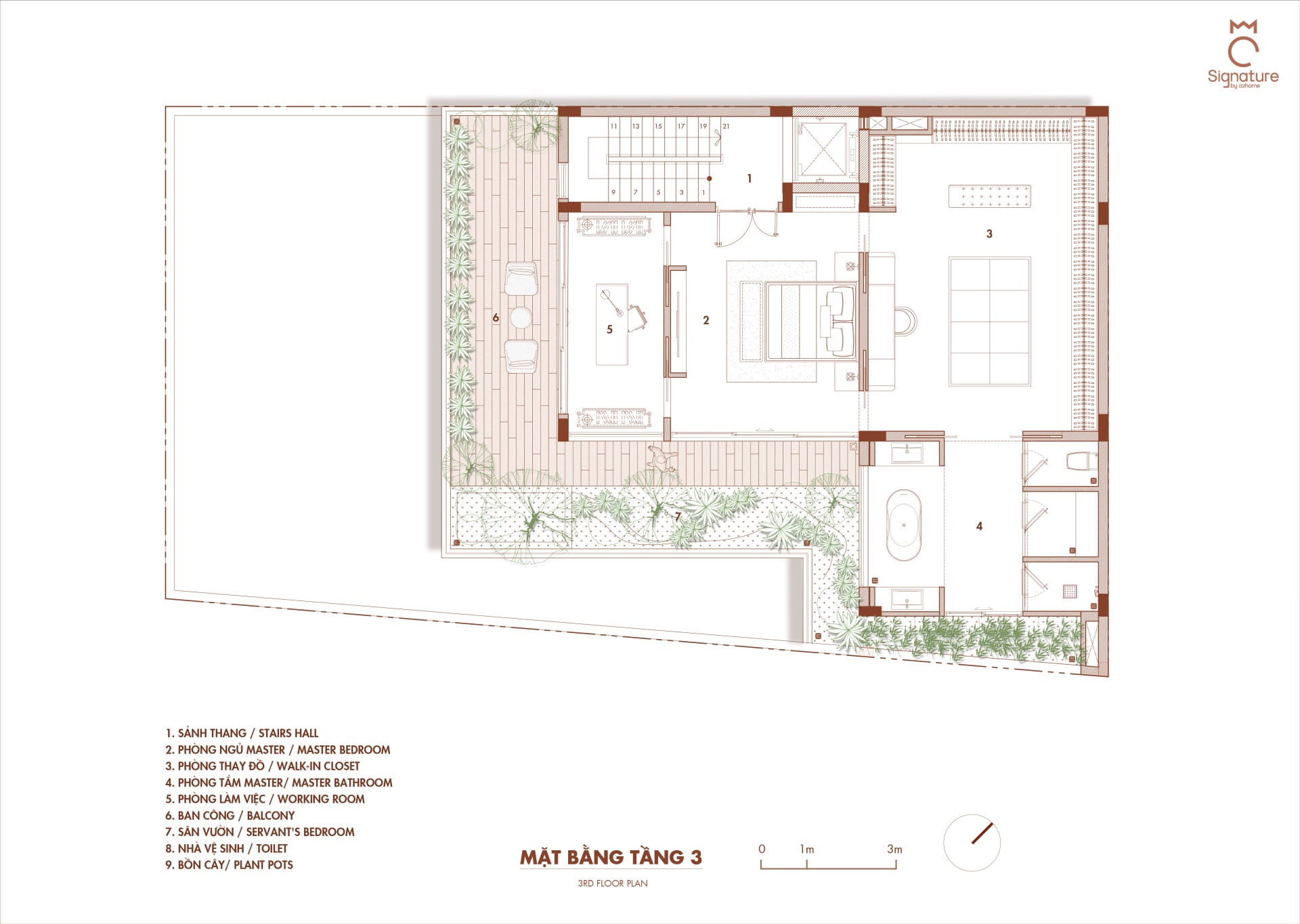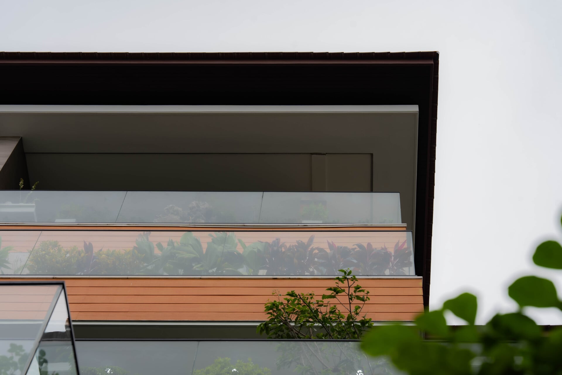 Ngôi nhà phát triển theo phương đứng với sự sắp đặt khéo léo của các lớp không gian đệm đan xen bao gồm ban công, hiên nhà và những khu vườn nhỏ, đóng vai trò như những khoảng chuyển tiếp mềm mại, giúp tách biệt đời sống riêng tư ấm cúng khỏi nhịp sống hối hả, ồn ào của thành phố.
