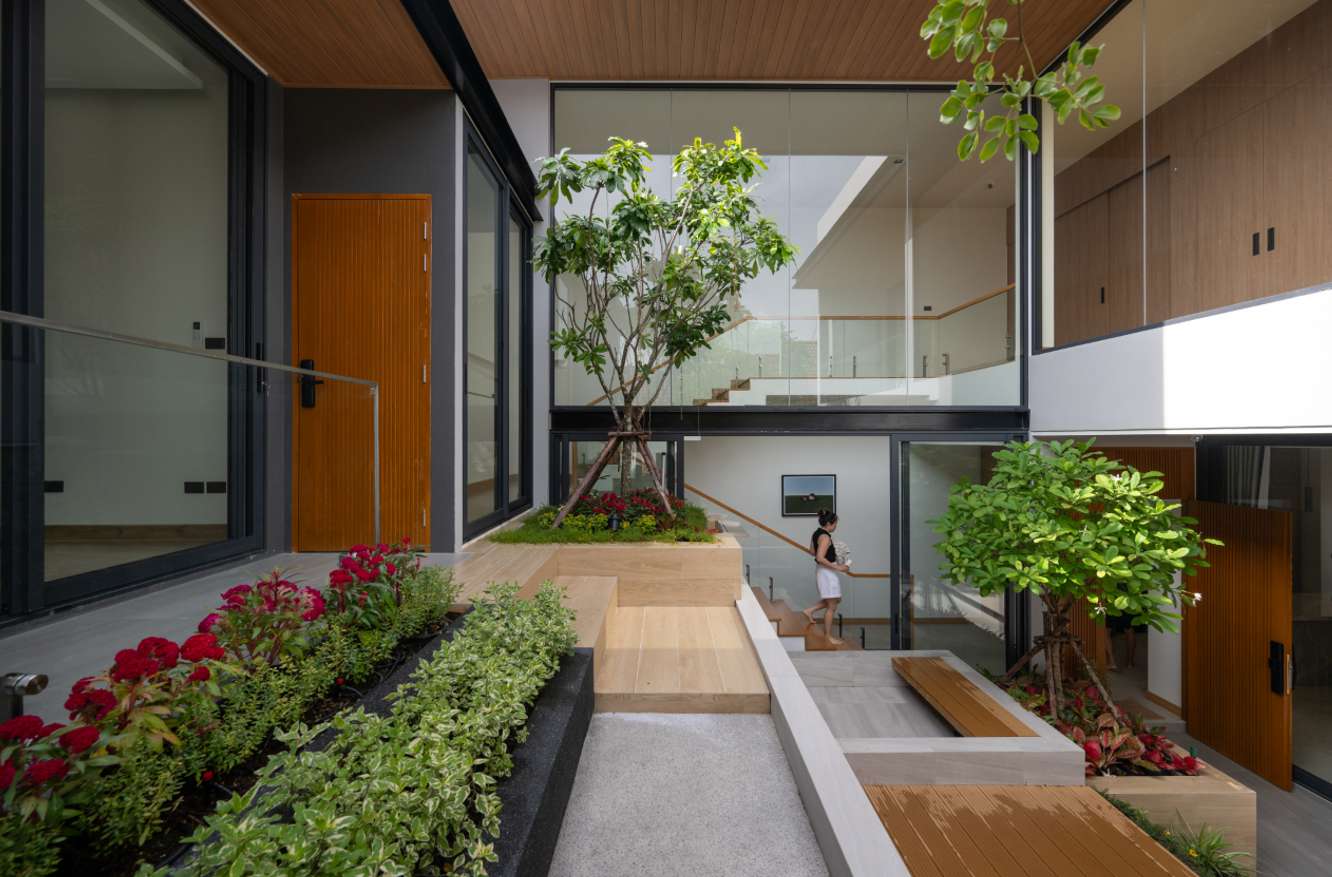 Sân trong (courtyard) được xem là “trái tim” của ngôi nhà, kết nối mọi không gian sinh hoạt.