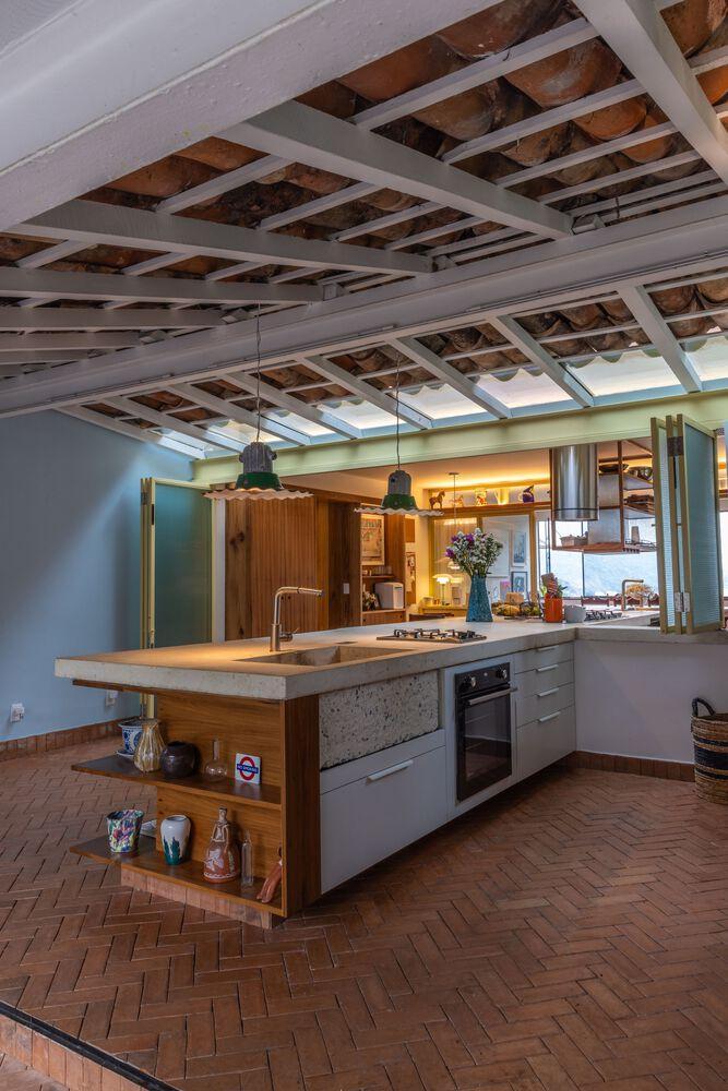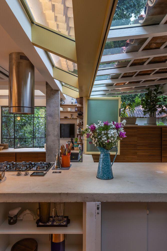 Giờ đây, khi đứng tại khu vực chuẩn bị bữa ăn, gia chủ có thể thu trọn vào tầm mắt vẻ đẹp hùng vĩ và thơ mộng của thành phố Rio de Janeiro. Những bức tường chắn xưa kia giờ đã nhường chỗ cho sự hiện diện đầy mê hoặc của mặt nước đầm phá và những đỉnh núi mờ ảo trong sương. Khoảnh khắc ánh hoàng hôn đổ xuống không gian bếp không chỉ mang lại những giá trị thẩm mỹ đơn thuần mà còn tạo nên một sự gắn kết tâm linh sâu sắc giữa con người và nơi chốn, biến những công việc nội trợ thường nhật trở thành những trải nghiệm đầy cảm hứng và tràn ngập niềm vui.