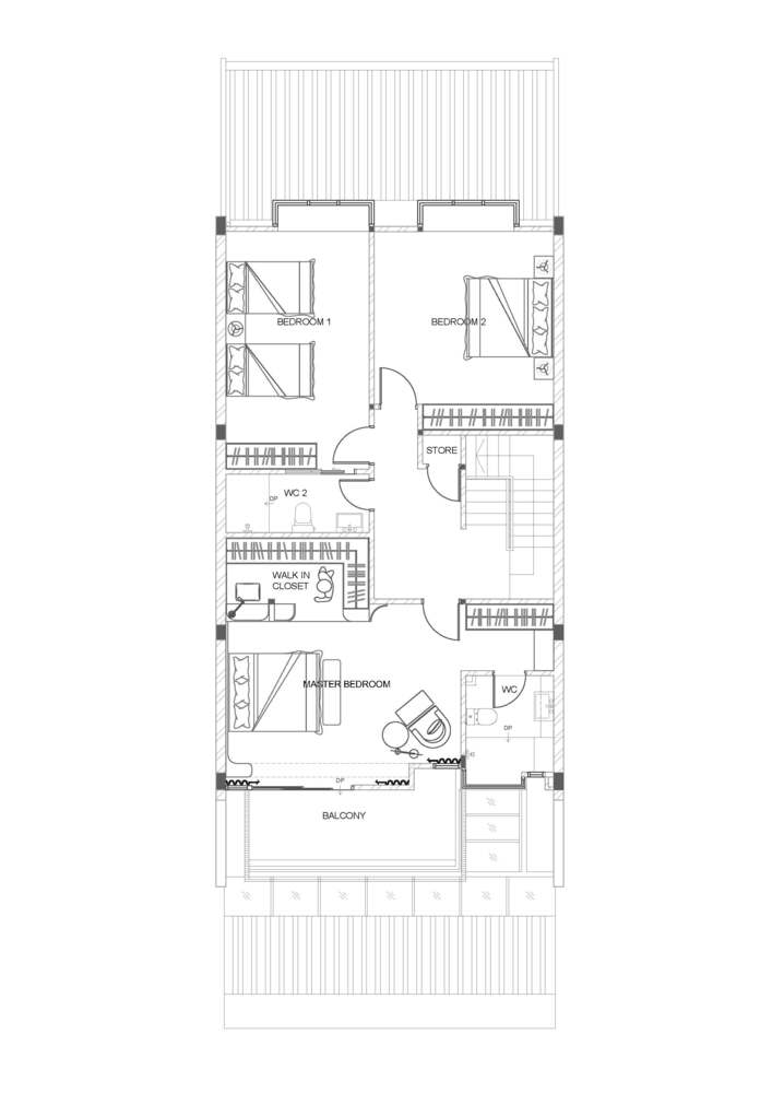 Bước vào khu vực nghỉ ngơi, tinh thần tối giản tiếp tục được duy trì để đảm bảo một giấc ngủ sâu và sự hồi phục năng lượng trọn vẹn. Phòng ngủ chính là minh chứng cho triết lý Less is more với bố cục cực kỳ gọn gàng và hạn chế vật dụng.