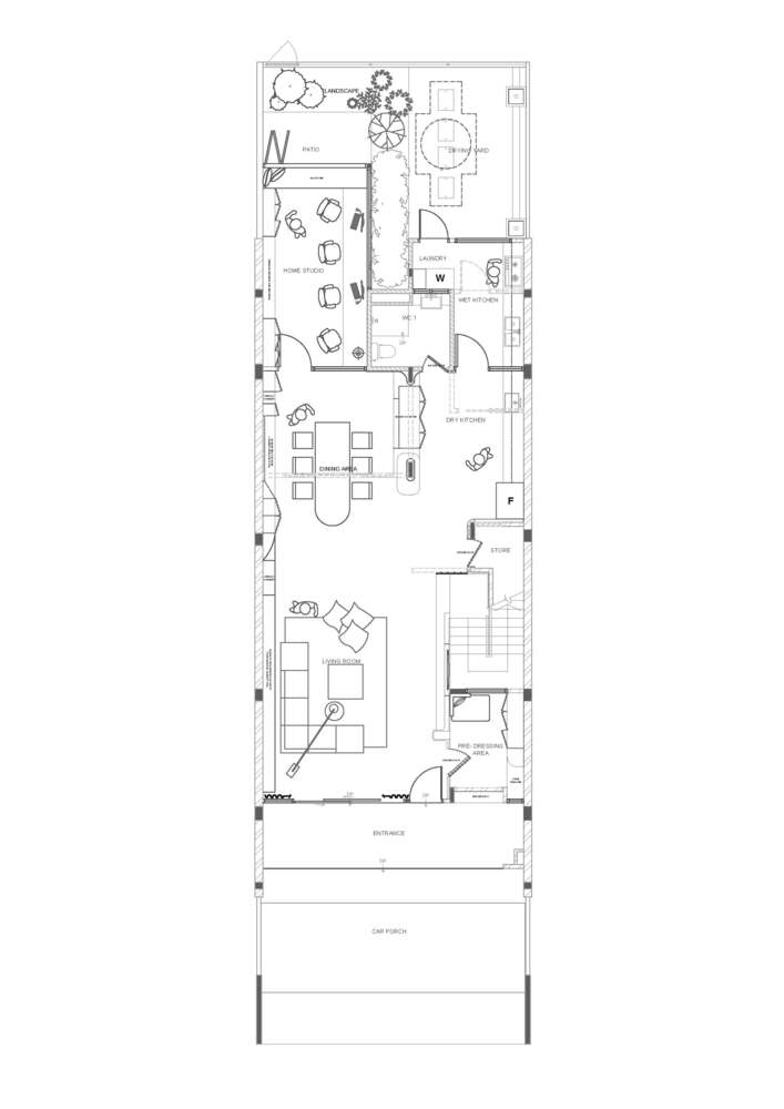 Ranh giới giữa các khu vực được phân định khéo léo bằng ngôn ngữ của chất liệu và kiến trúc