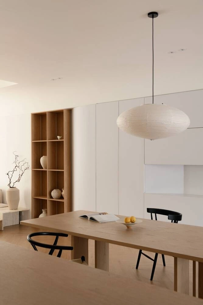 Sự hiện diện của đồ gốm thủ công mang lại nét tinh tế và ấm áp cho không gian tối giản.