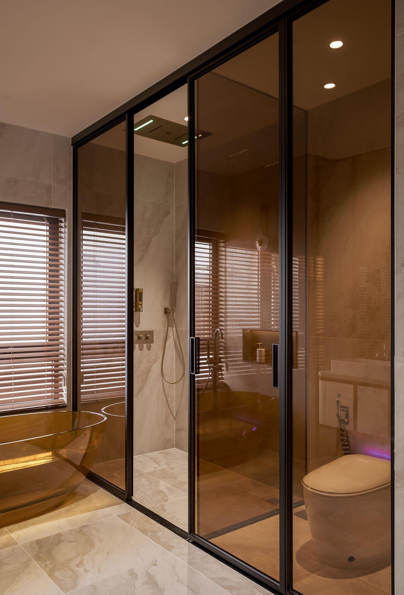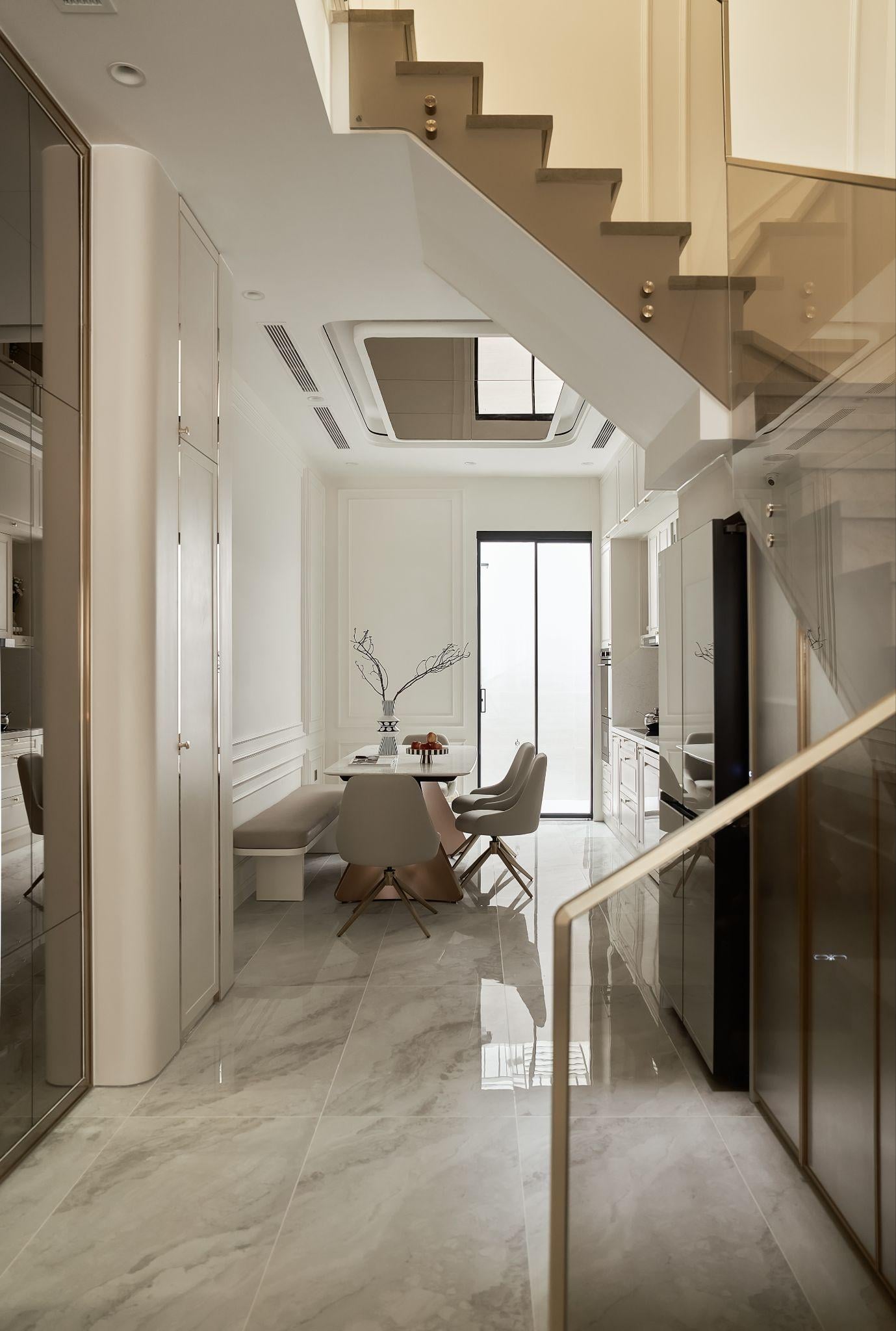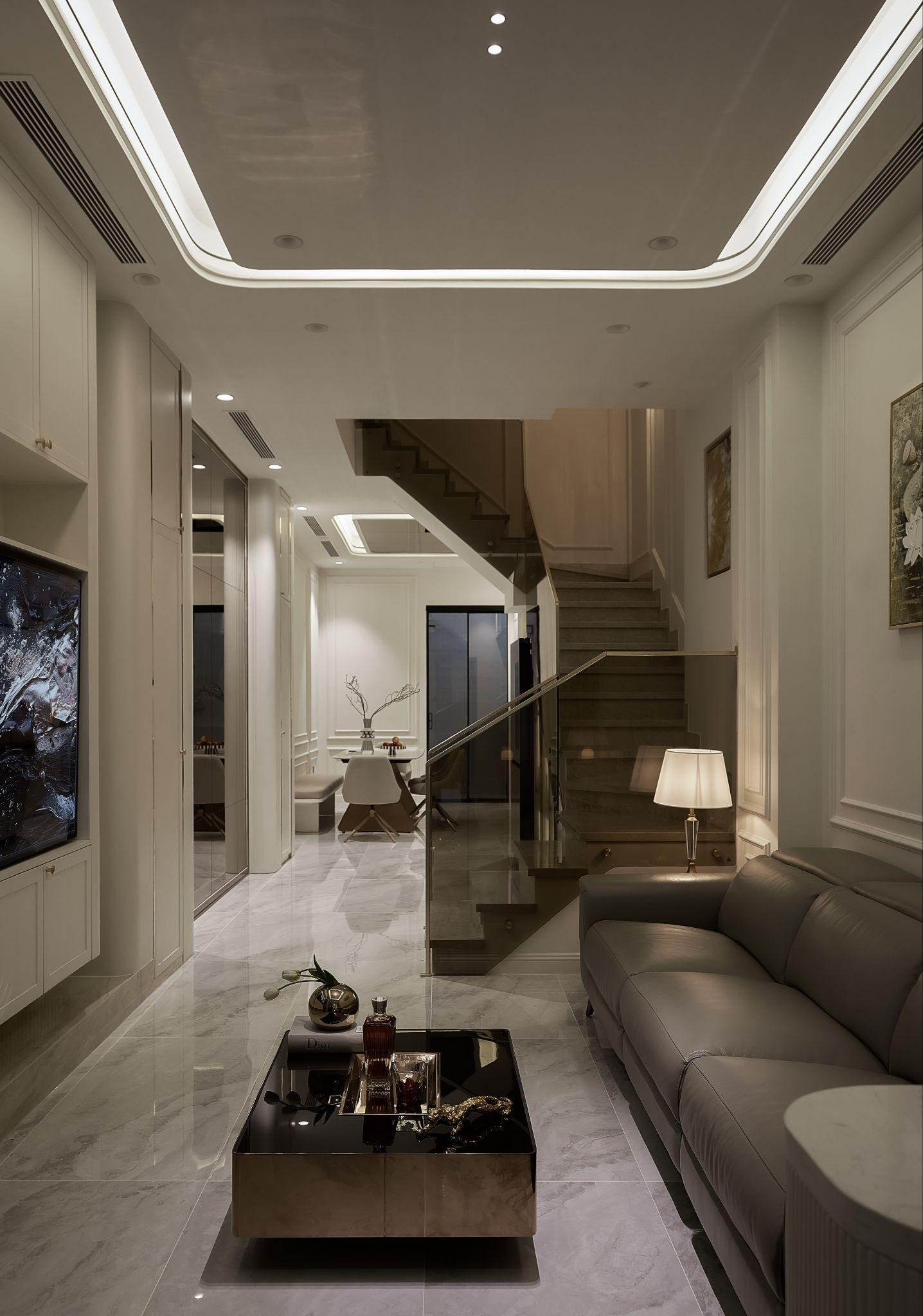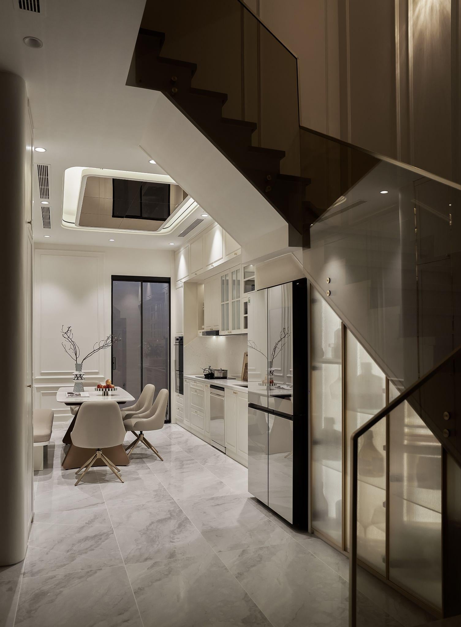 Về ánh sáng: Hệ thống chiếu sáng được thiết kế phân tầng, theo từng không gian. Ánh sáng vàng ấm tạo không khí ấm cúng cho phòng khách, trong khi ánh sáng trắng mát mẻ được sử dụng cho bếp và phòng tắm. Đèn spotlight làm nổi bật các chi tiết tân cổ điển, biến chúng thành những "tác phẩm nghệ thuật" trong không gian.