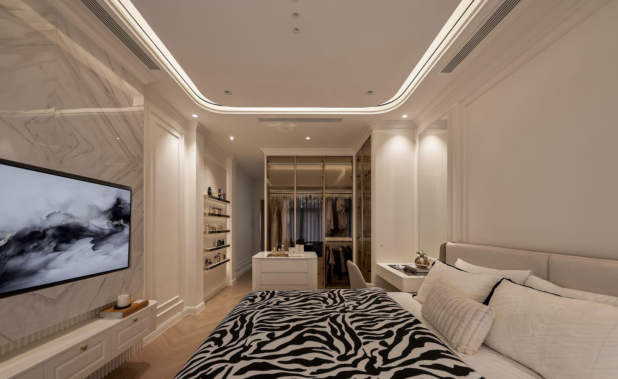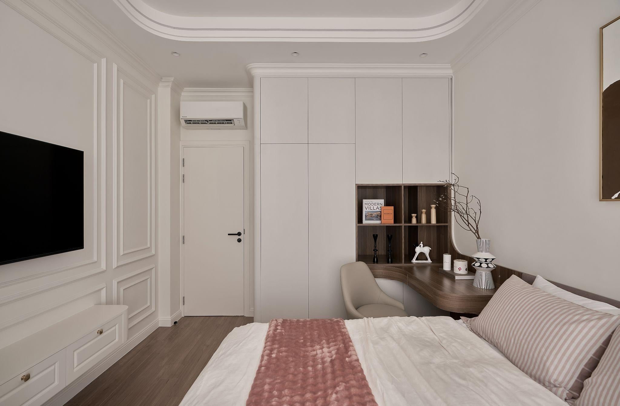 Về màu sắc: Gam màu trang nhã, sáng (trắng kem, be, xám nhạt) được chọn làm nền chủ đạo, giúp không gian trở nên rộng rãi và thoáng đãng. Đây là "bức tranh nền" để những điểm nhấn tân cổ điển tỏa sáng.