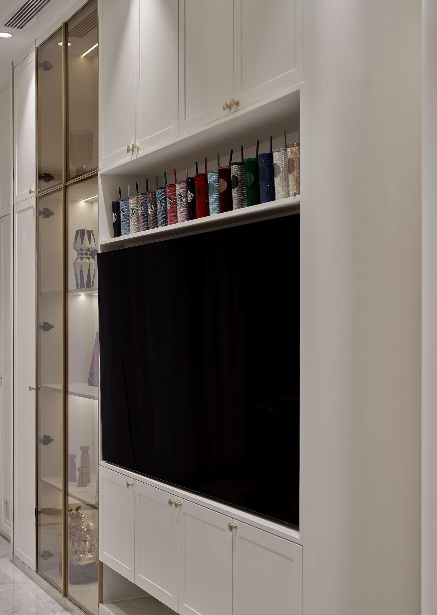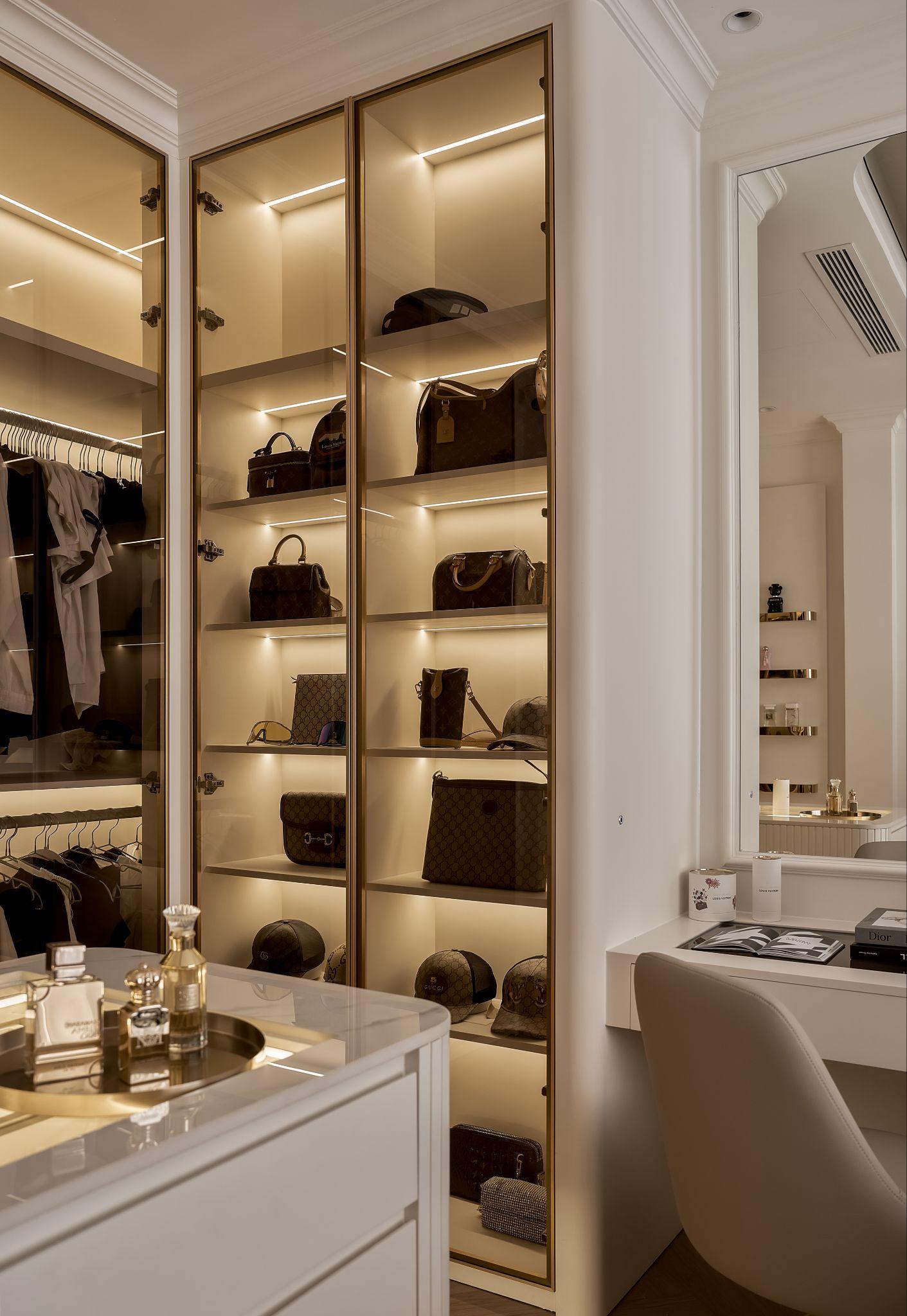 Các hệ tủ kết hợp được thiết kế bám sát theo tường, giải phóng tối đa không gian trung tâm. Điều này không chỉ tạo ra "khoảng thở" cần thiết cho công trình mà còn hình thành lối di chuyển thoải mái, linh hoạt.