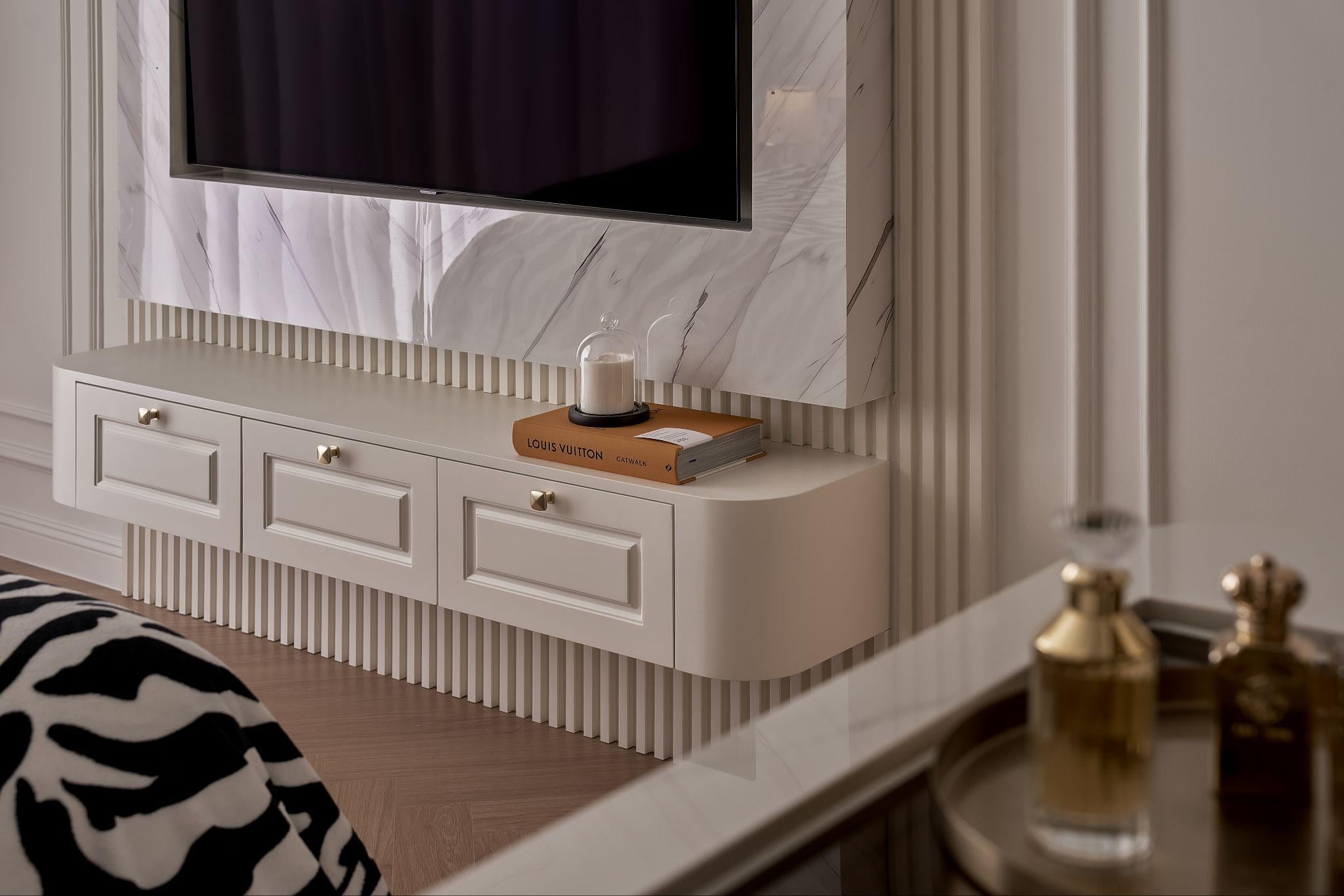Đây có lẽ là thách thức lớn nhất: làm sao để thể hiện phong cách tân cổ điển - vốn đòi hỏi sự hoành tráng - trong một không gian khiêm tốn mà không tạo cảm giác ngột ngạt?