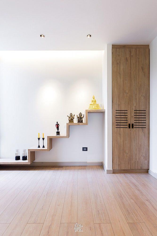 Hệ tủ kệ được thiết kế thông minh, vừa đảm bảo công năng vừa đóng vai trò như những vách ngăn trang trí tinh tế