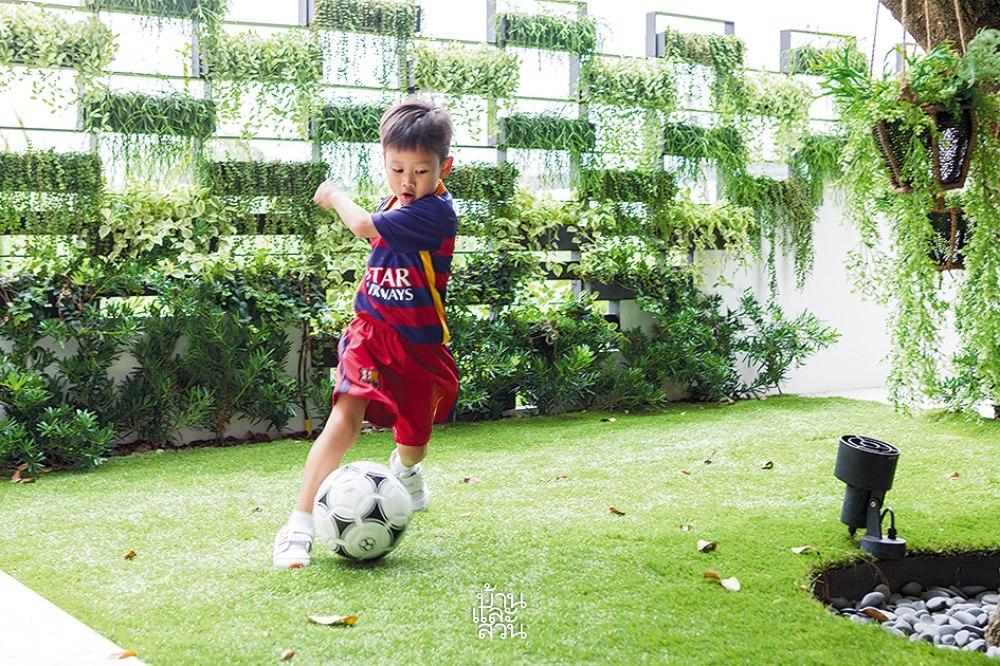 Góc sân nhỏ cho con vui chơi tự do trong không gian ngập tràn sắc xanh