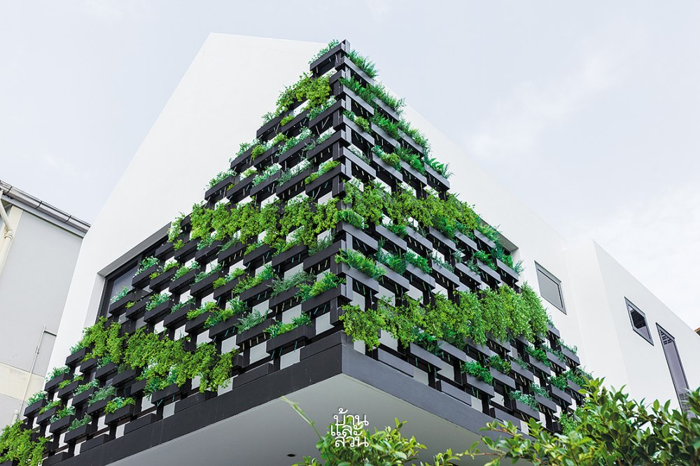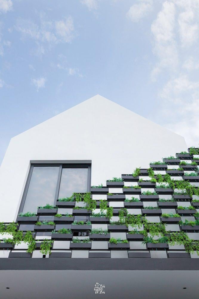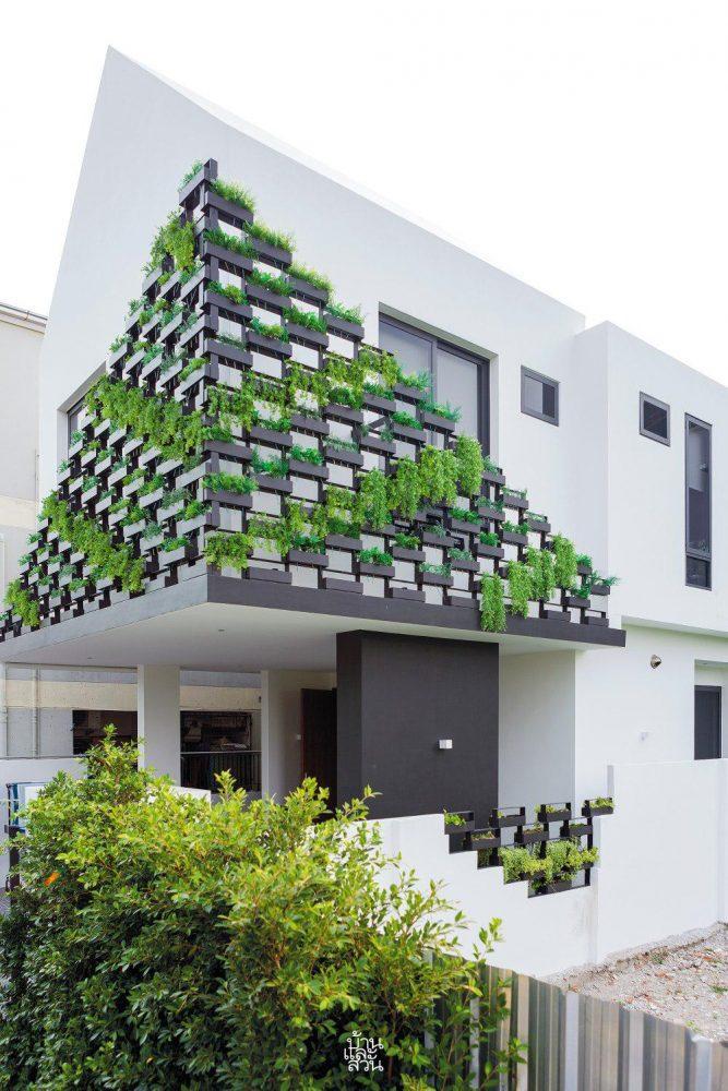 Giữa những con phố tấp nập, một ngôi nhà nổi bật, thu hút mọi ánh nhìn nhờ những mảng xanh được dệt nên đầy nghệ thuật ngay từ mặt tiền. Không phô trương bằng vẻ hào nhoáng hay khối tích đồ sộ, ngôi nhà chọn cách giấu mình sau lớp áo thiên nhiên, thì thầm những câu chuyện dịu dàng về sự giao hòa tuyệt đối giữa con người và cỏ cây.
