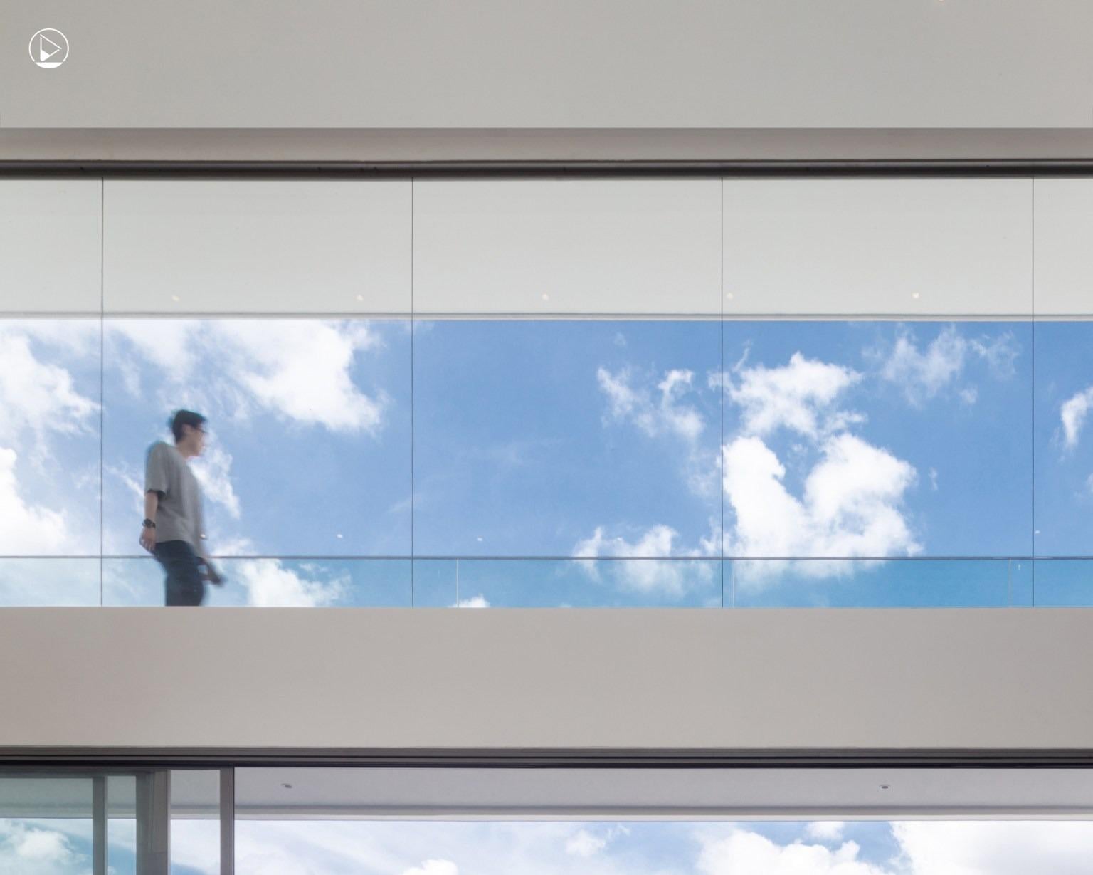 Chất liệu kính tạo hiệu ứng phản chiếu thú vị. Không gian như được hòa nhập cùng bầu trời và thiên nhiên