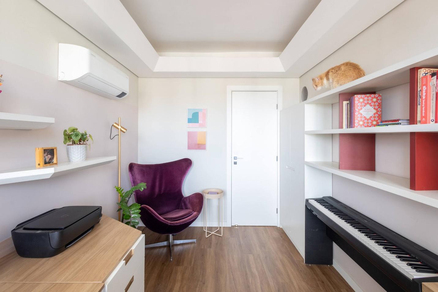 Các góc làm việc được thiết kế để ngồi thoải mái. Bàn làm việc với kệ sách mở và cả một cây piano cho những giờ phút thư giãn