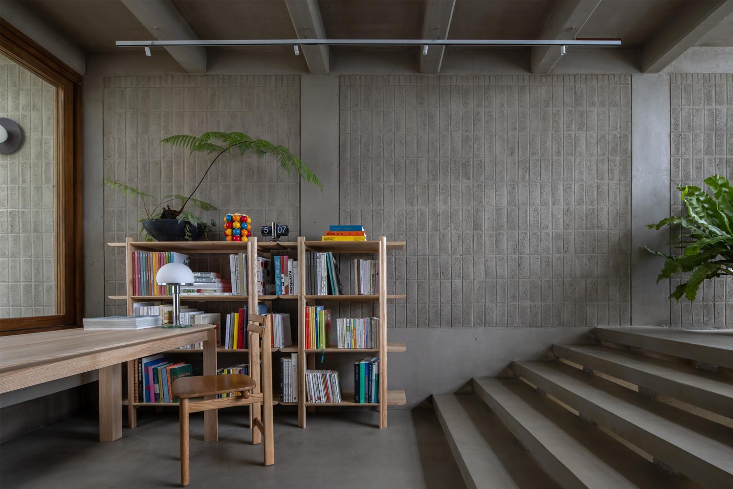 Đặc biệt tại tầng lửng, hệ thống bục ngồi giật cấp được thiết kế đầy ngẫu hứng để phục vụ cho đa dạng mục đích, từ các buổi hội thảo nhỏ đến những buổi chiếu phim nghệ thuật ấm cúng. Khu vực này kết hợp khéo léo cùng một quầy pantry nhỏ, nằm giữa không gian tràn ngập cây xanh, ánh sáng và gió trời, mang lại cảm giác thư thái tuyệt đối cho bất kỳ ai ghé thăm.