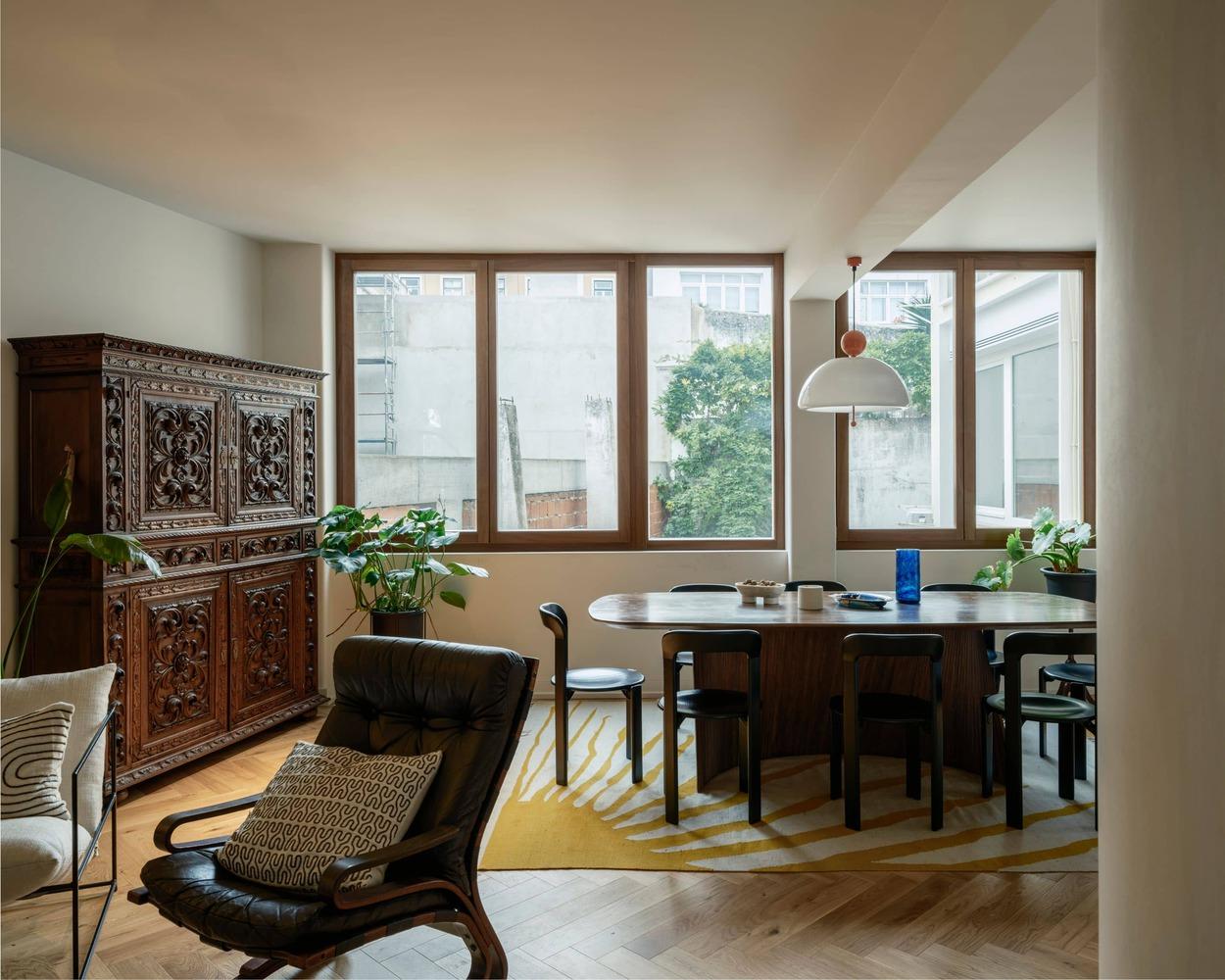 Sự kết hợp giữa gỗ sáng và gỗ tối không chỉ đẹp mắt mà còn tạo cảm giác vừa hiện đại vừa gần gũi. Đây là nơi quá khứ và hiện tại bắt tay nhau, nơi di sản của tòa nhà cũ được tôn trọng nhưng cũng được làm mới