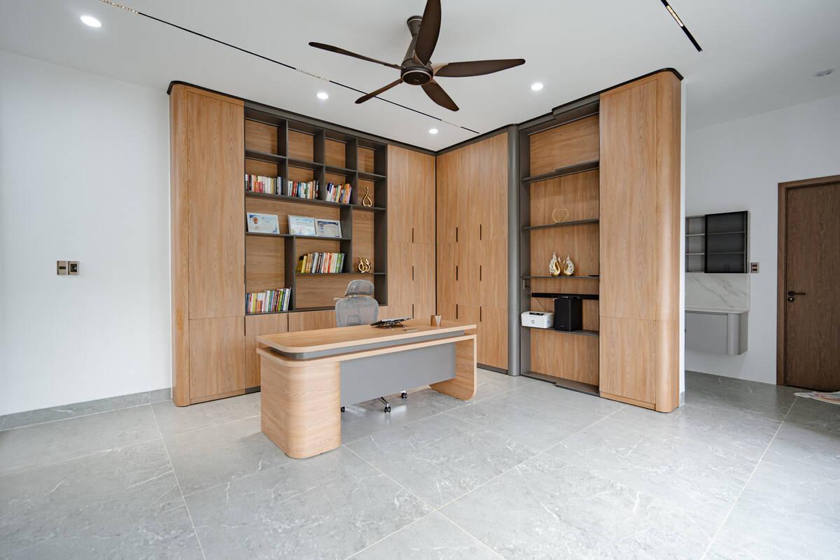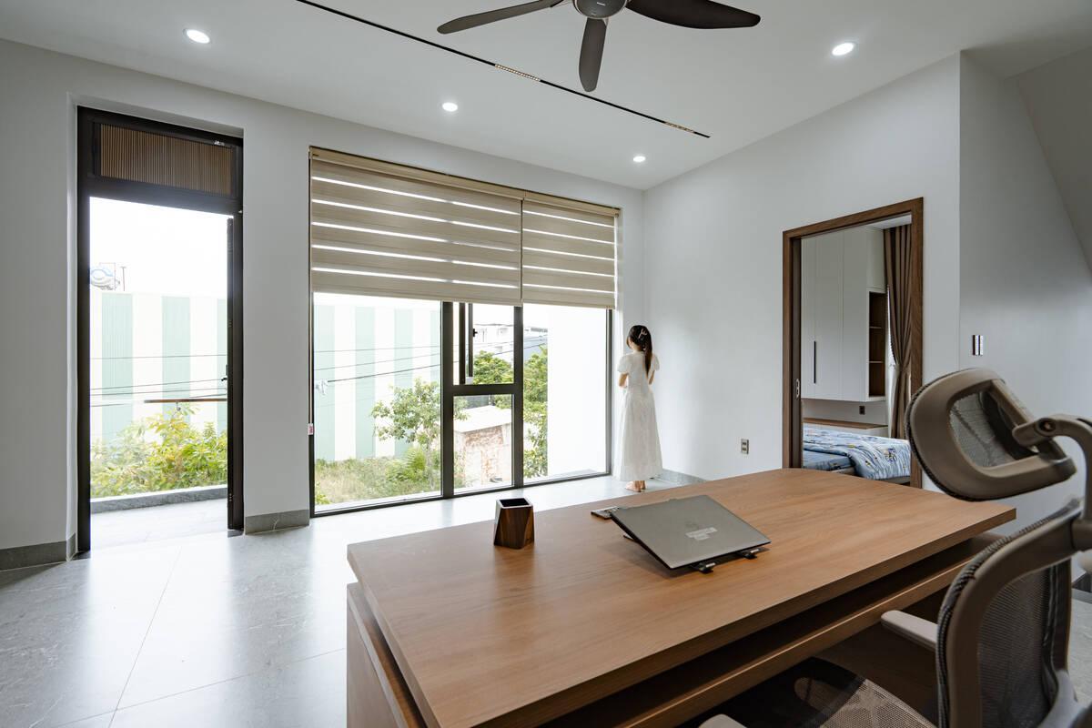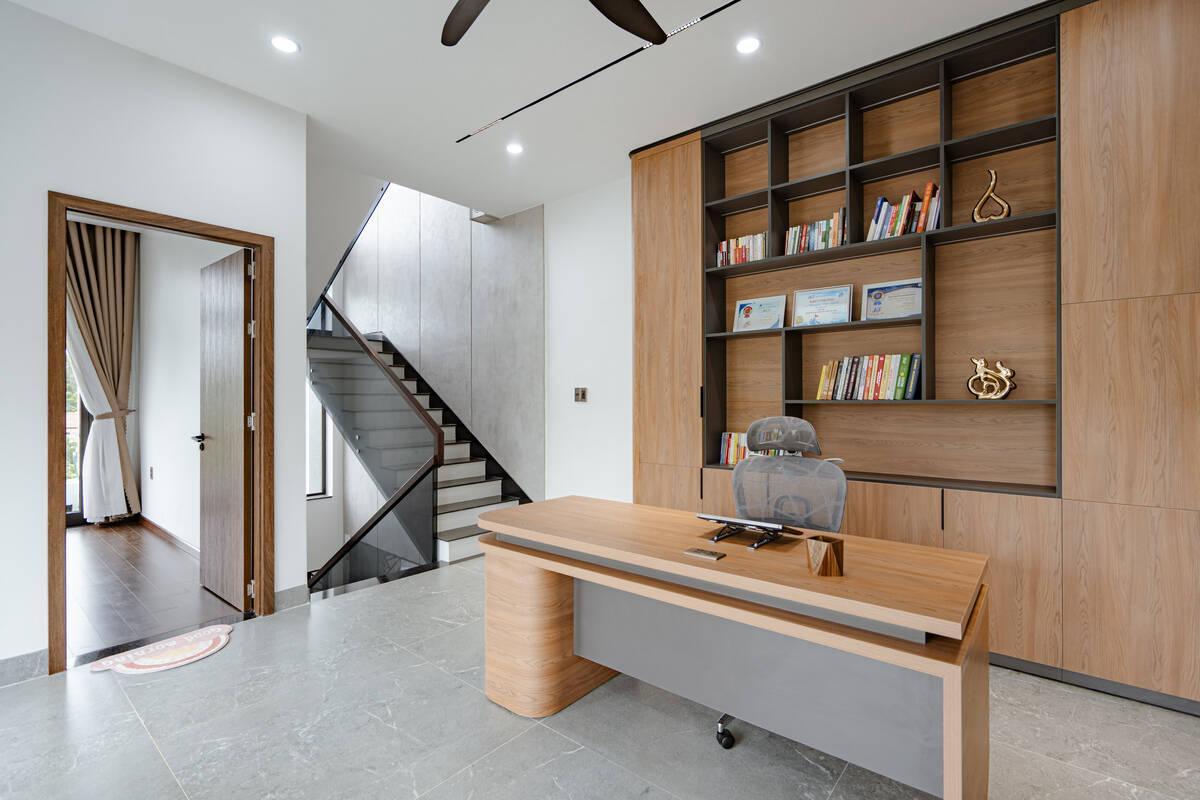 Ngoài ra, không gian làm việc tại nhà cũng được gia chủ đặc biệt quan tâm. Góc làm việc được sắp xếp khoa học, hướng tầm nhìn ra khu vực ban công xanh mát, giúp khơi nguồn cảm hứng và giảm bớt căng thẳng.