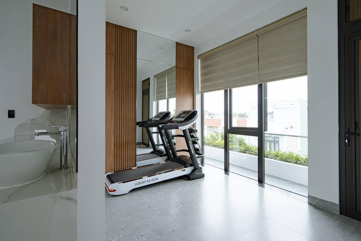 Góc tập Gym tại gia ngập tràn ánh sáng, nơi rèn luyện sức khỏe mỗi ngày với view nhìn thoáng đãng