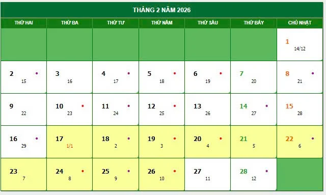 Mùng 1 Tết rơi vào 17/2/2026