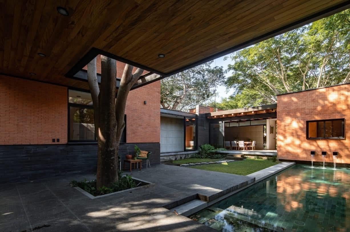 Thay vì xây dựng một ngôi nhà khép kín rồi “mở cửa sổ cho có”, Casa Keita được hình dung ngay từ đầu như một không gian sống đan xen với thiên nhiên. Vấn đề đặt ra là làm sao để diện tích lớn không trở nên nặng nề, bí bách. Giải pháp được lựa chọn là giảm tối đa tường ngăn, mở rộng các mặt tiếp xúc với sân vườn và để ánh sáng, gió tự nhiên tự do len lỏi vào từng khu vực sinh hoạt.