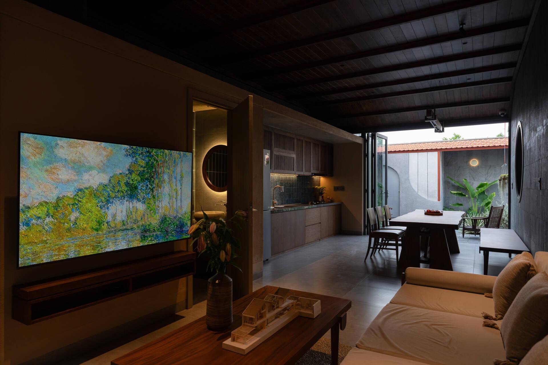 Ranh giới giữa trong và ngoài bị xóa nhòa, chỉ còn lại sự thoải mái và bình yên cho những người sống bên trong