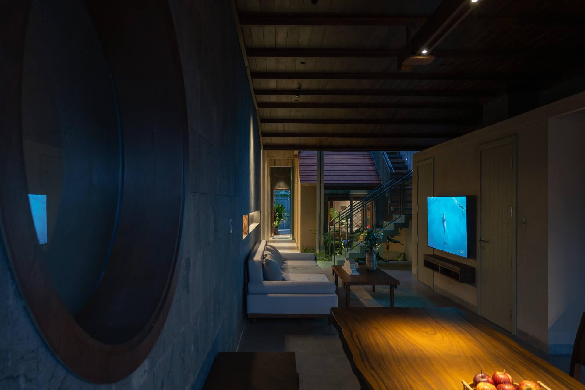 Tại bất kỳ vị trí nào trong nhà, dù là đang ngồi ở phòng khách hay thư giãn bên hồ bơi, gia chủ đều có thể cảm nhận được sự chuyển động nhẹ nhàng của thiên nhiên. Đó có thể là vệt nắng thay đổi theo giờ, hay làn gió mát lành thổi qua những tán cây. Kiến trúc lúc này không còn là những khối bê tông vô tri, mà đã trở thành một phần của thiên nhiên, mang lại sự thoải mái và bình yên tuyệt đối cho người ở.