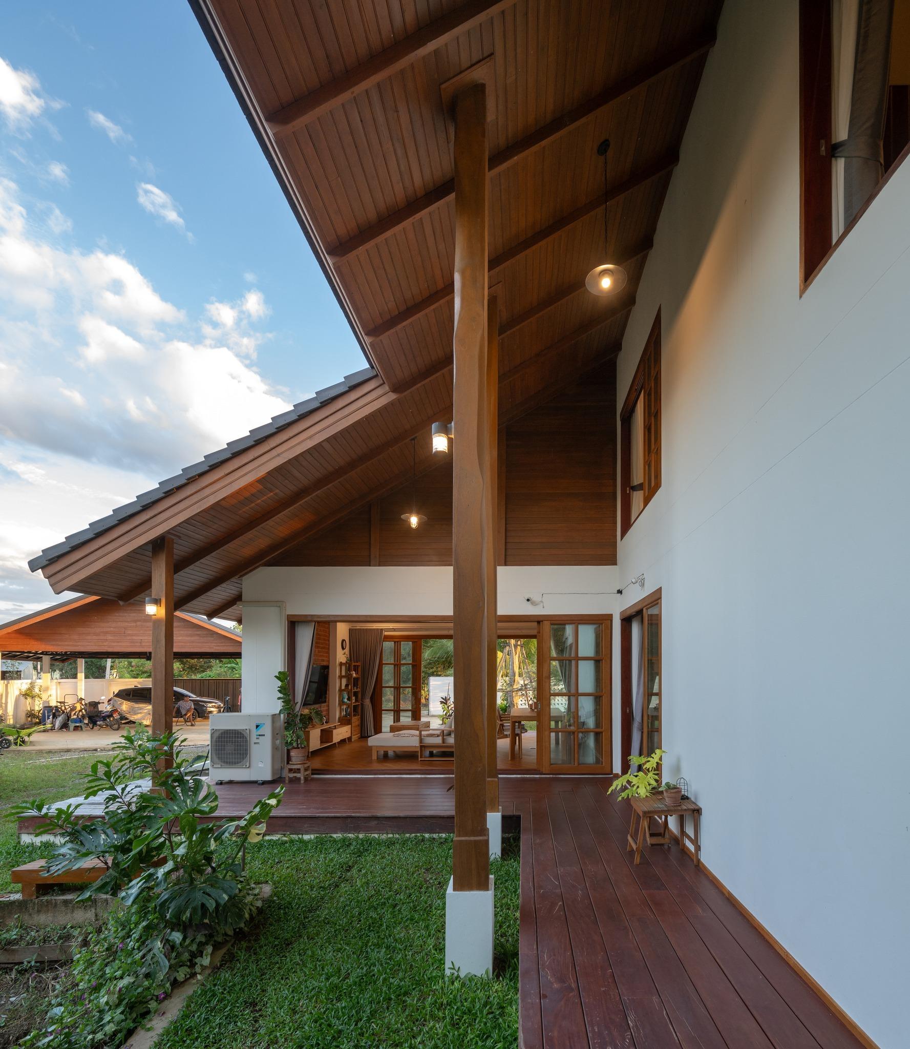 Giữa khu vườn xanh mát, BAAN THAM MA DA xuất hiện một cách lặng lẽ nhưng vững chãi. Không phô trương hình khối, công trình hình thành từ mong muốn rất đời thường của gia chủ: Một không gian đủ yên tĩnh để ở lâu dài, đủ mở để thiên nhiên trở thành một phần của sinh hoạt hàng ngày.