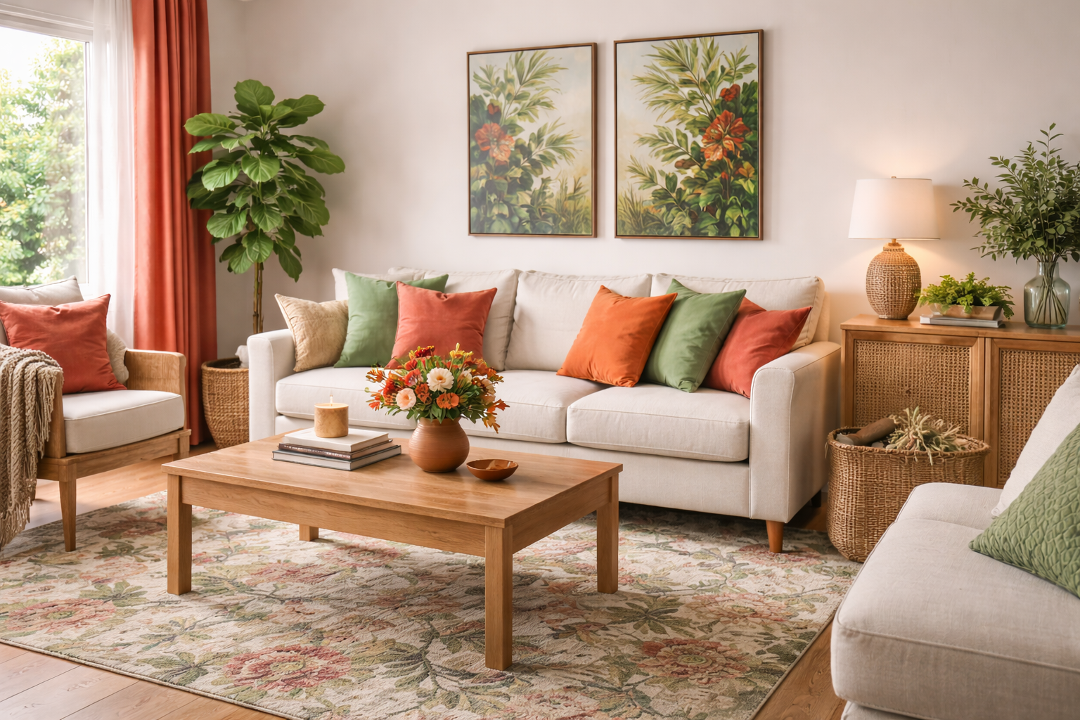Trước hết, gia chủ nên tránh những gam màu xung khắc với mệnh của mình. Ví dụ, người mệnh Hỏa thường hợp với màu xanh lá (Mộc sinh Hỏa), đỏ, cam, hồng hoặc tím. Những gam màu này có thể được đưa vào không gian qua rèm cửa, gối tựa, tranh trang trí hoặc một vài chi tiết nội thất nhỏ để tạo điểm nhấn, không nhất thiết phải dùng quá nhiều.
