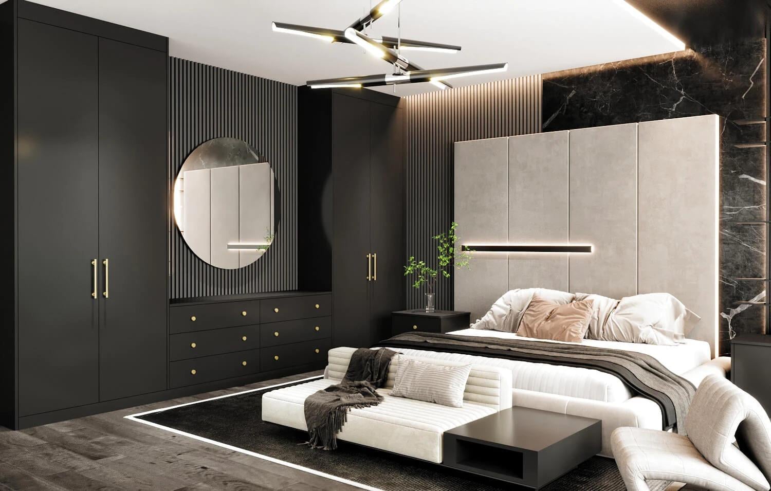 Tủ kịch trần giúp loại bỏ hoàn toàn khoảng trống phía trên - nơi bụi bẩn thường âm thầm tích tụ và rất khó vệ sinh. Giải pháp này không chỉ gọn gàng về thẩm mỹ mà còn giảm đáng kể thời gian dọn dẹp