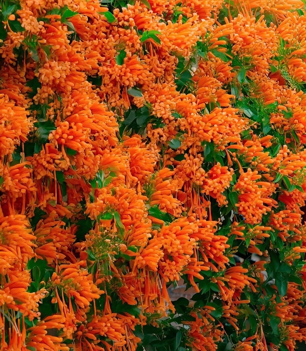 Trên nền lá xanh thẫm, những chùm hoa đỏ cam nổi bật tựa như những dây pháo ngày Tết, gợi nhắc về sự may mắn và hân hoan. Tại vùng đất có khí hậu ôn hòa như Lâm Đồng, hoa xác pháo có thể nở rải rác quanh năm. Thế nhưng, thời điểm hoa bung lụa đẹp nhất, rực rỡ nhất vẫn là vào mùa xuân, những ngày cận kề Tết Nguyên đán.