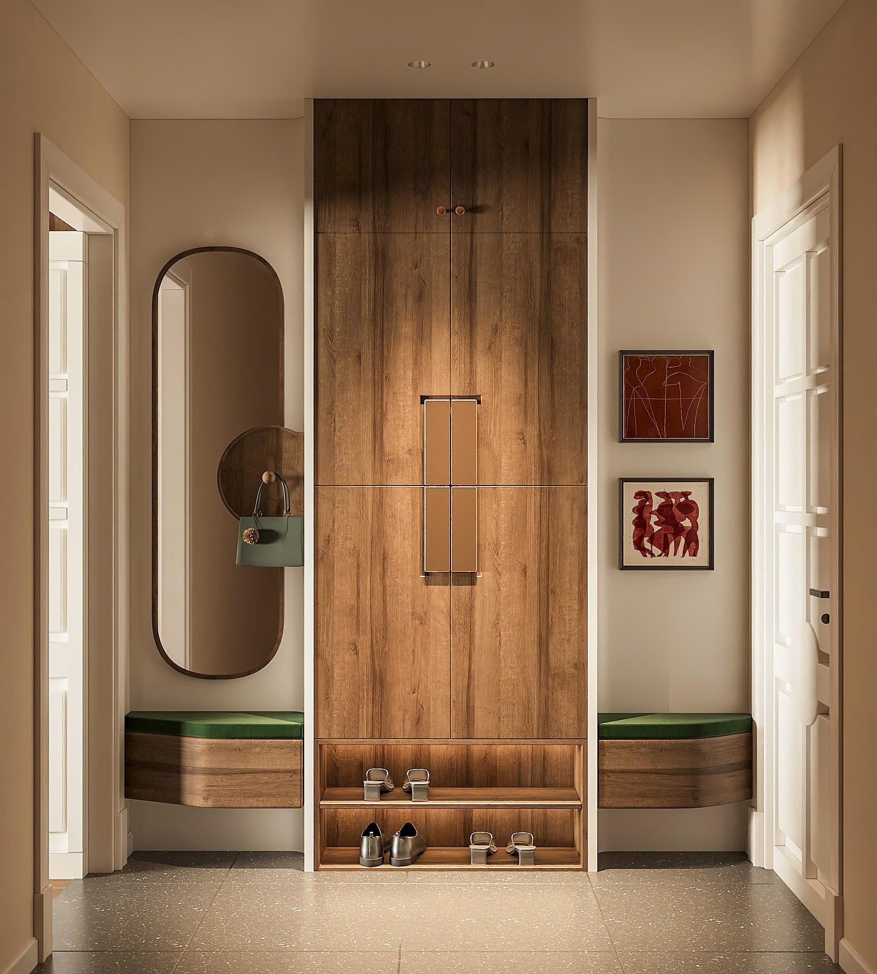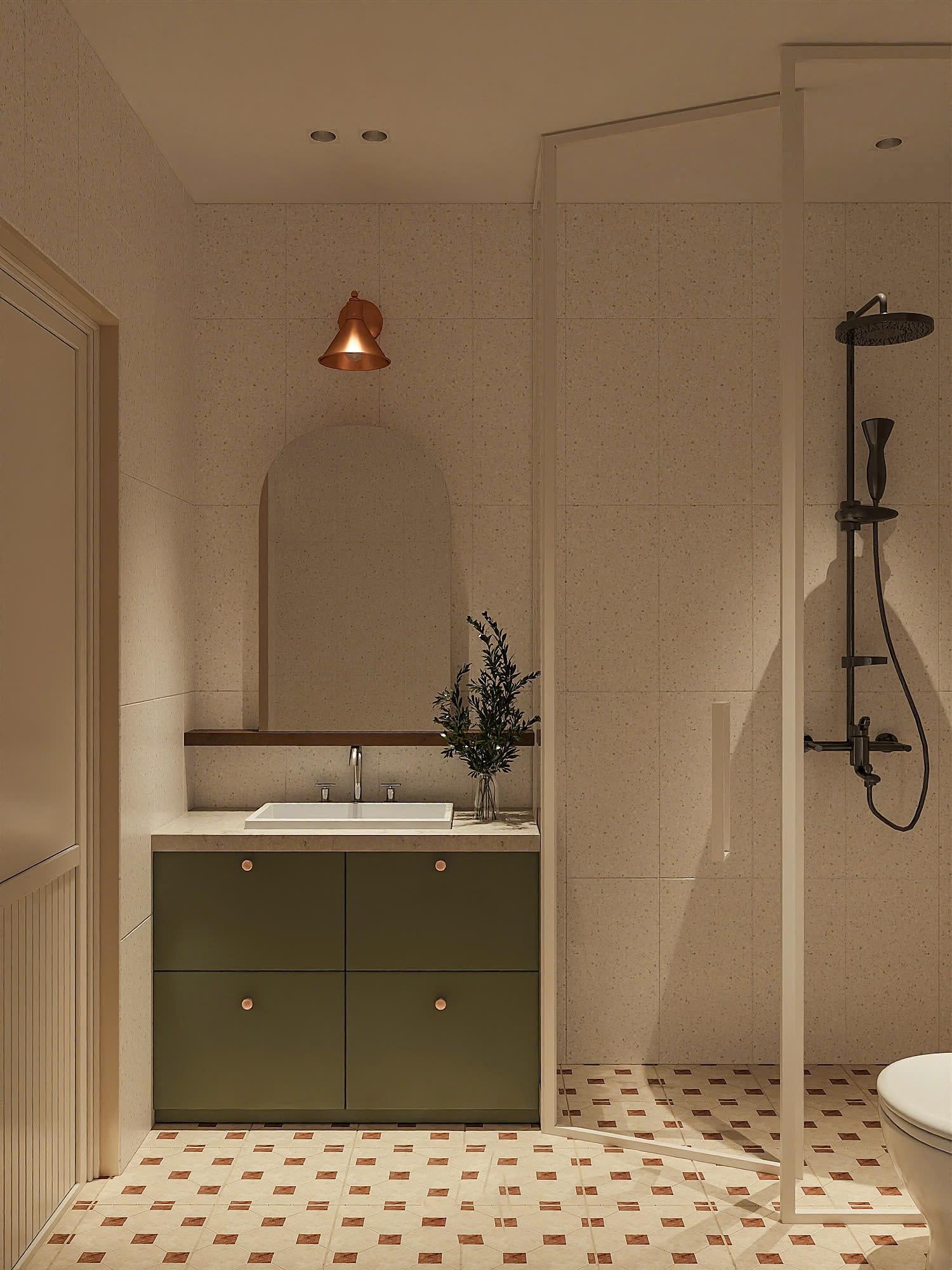 Điều đặc biệt nhất ở Hồng House không phải là sự sang trọng, mà là cảm giác vừa đủ. Mỗi góc nhỏ đều mang dấu ấn của một người phụ nữ từng trải, yêu cái đẹp và yêu sự gọn gàng. Không gian không quá cầu kỳ, nhưng rất nhiều chi tiết được chăm chút: một chiếc gương dài ở sảnh, ghế ngồi có đệm màu xanh lục bảo, những khung tranh trừu tượng, hay tủ giày âm tường với tay nắm đồng tinh tế.