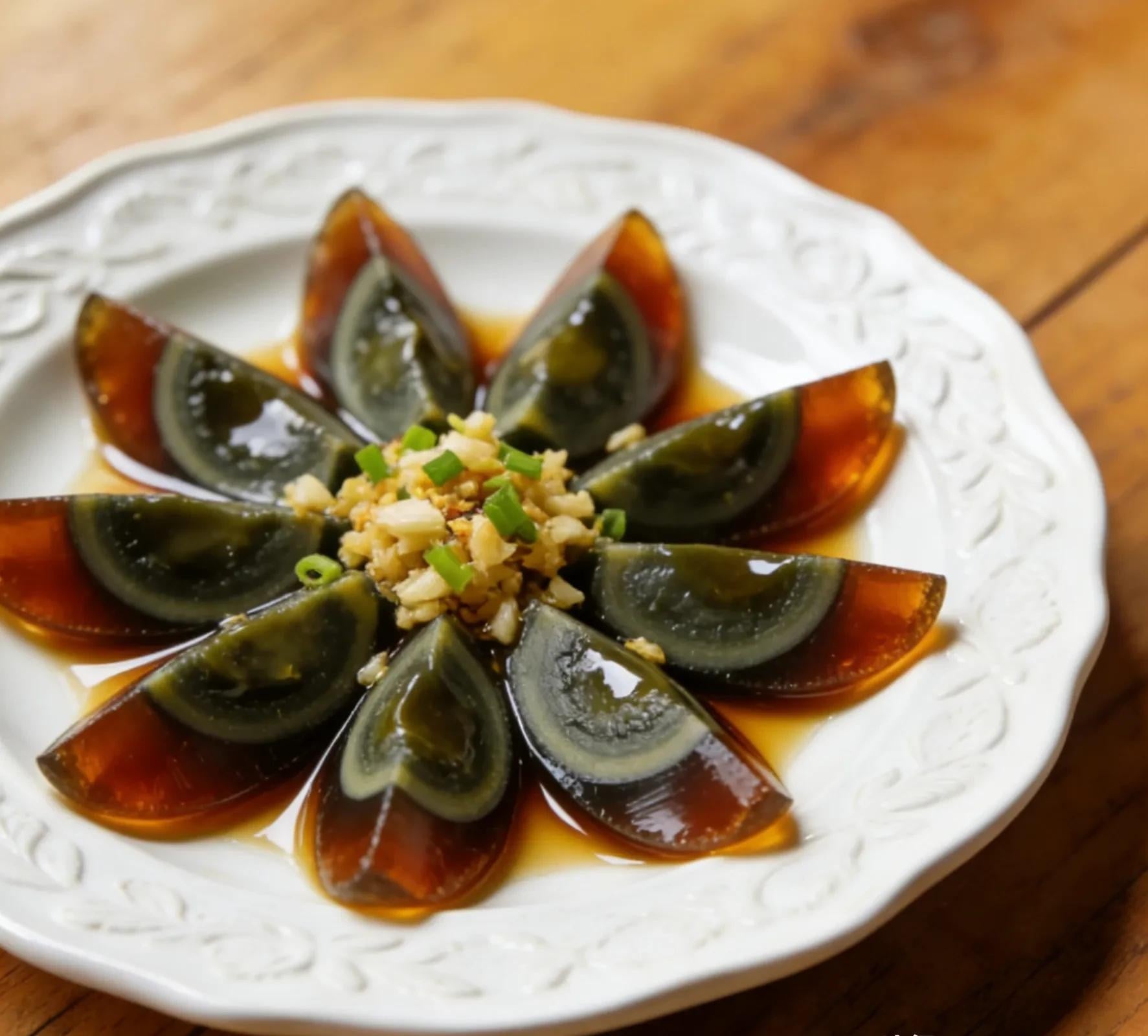 Trứng bắc thảo cắt múi cau, rưới nước sốt pha từ nước tương, giấm và dầu mè là món ăn quen thuộc trong nhiều gia đình. Hương vị béo nhẹ, mặn dịu giúp món salad này trở thành lựa chọn tượng trưng cho sự sum họp, quây quần đầu năm.