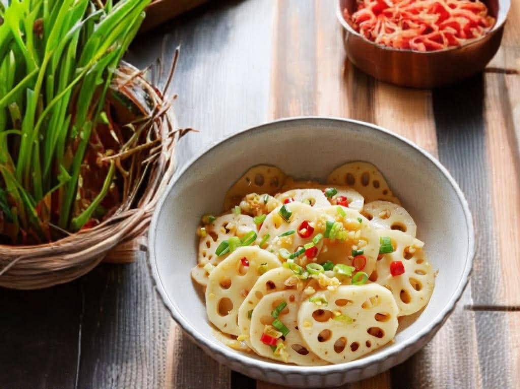 Củ sen giòn, vị ngọt nhẹ, thường được xem là nguyên liệu mang lại may mắn và sự hanh thông. Khi thái lát mỏng, chần nhanh rồi trộn cùng nước tương, giấm và dầu mè, củ sen giữ được độ giòn đẹp mắt. Đây là món nộm vừa thanh mát vừa phù hợp cho những bữa ăn nhiều món thịt.