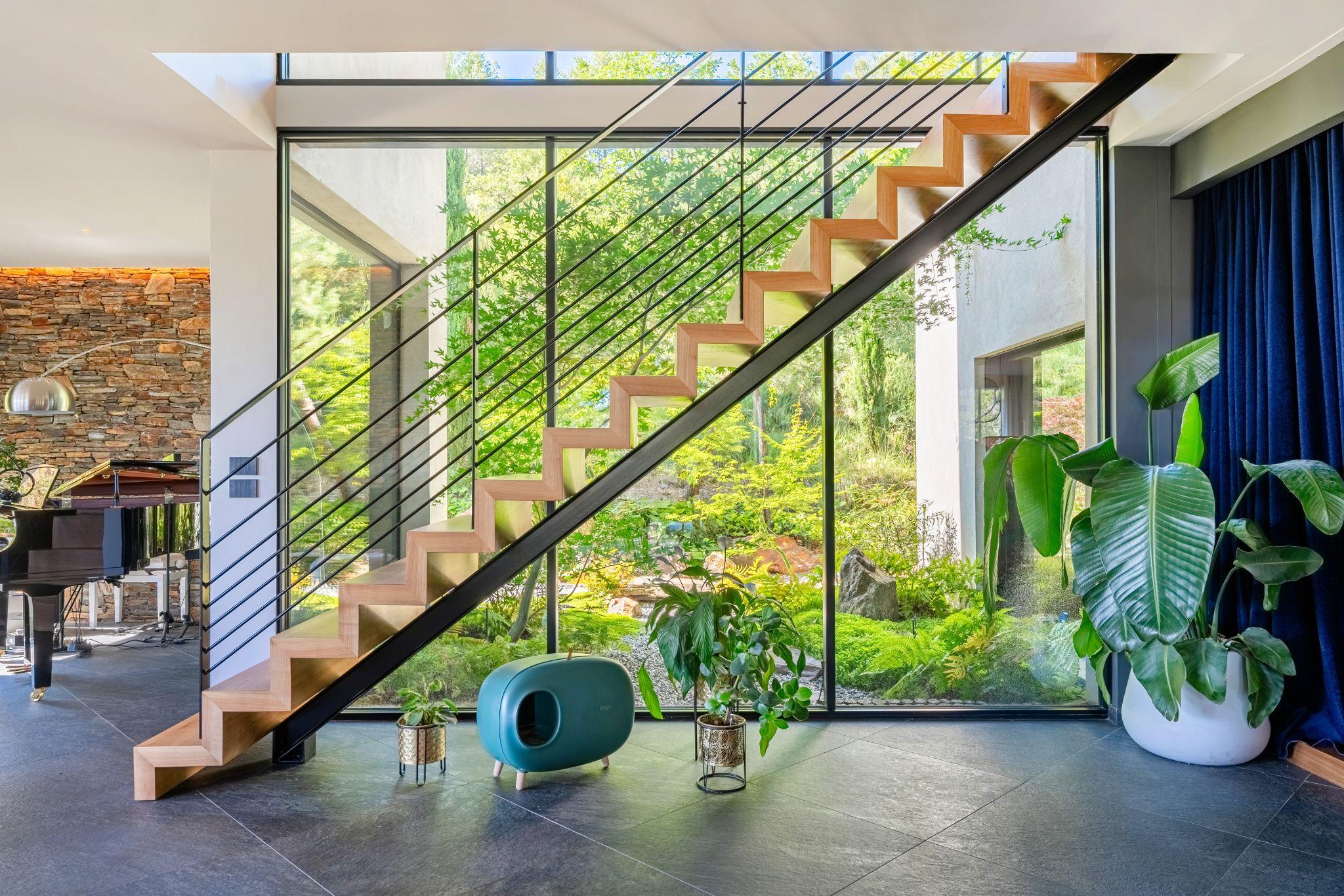 Hướng nhìn về phía tây nam được mở rộng tối đa, đưa đường chân trời Provence trở thành phông nền cho sinh hoạt hàng ngày. Các không gian chuyển tiếp như hiên, sân thượng và khoảng đệm ngoài trời đóng vai trò trung gian, giúp ngôi nhà thích ứng nhẹ nhàng với khí hậu địa phương, đồng thời làm mờ ranh giới giữa trong và ngoài, giữa kiến trúc và cảnh quan.