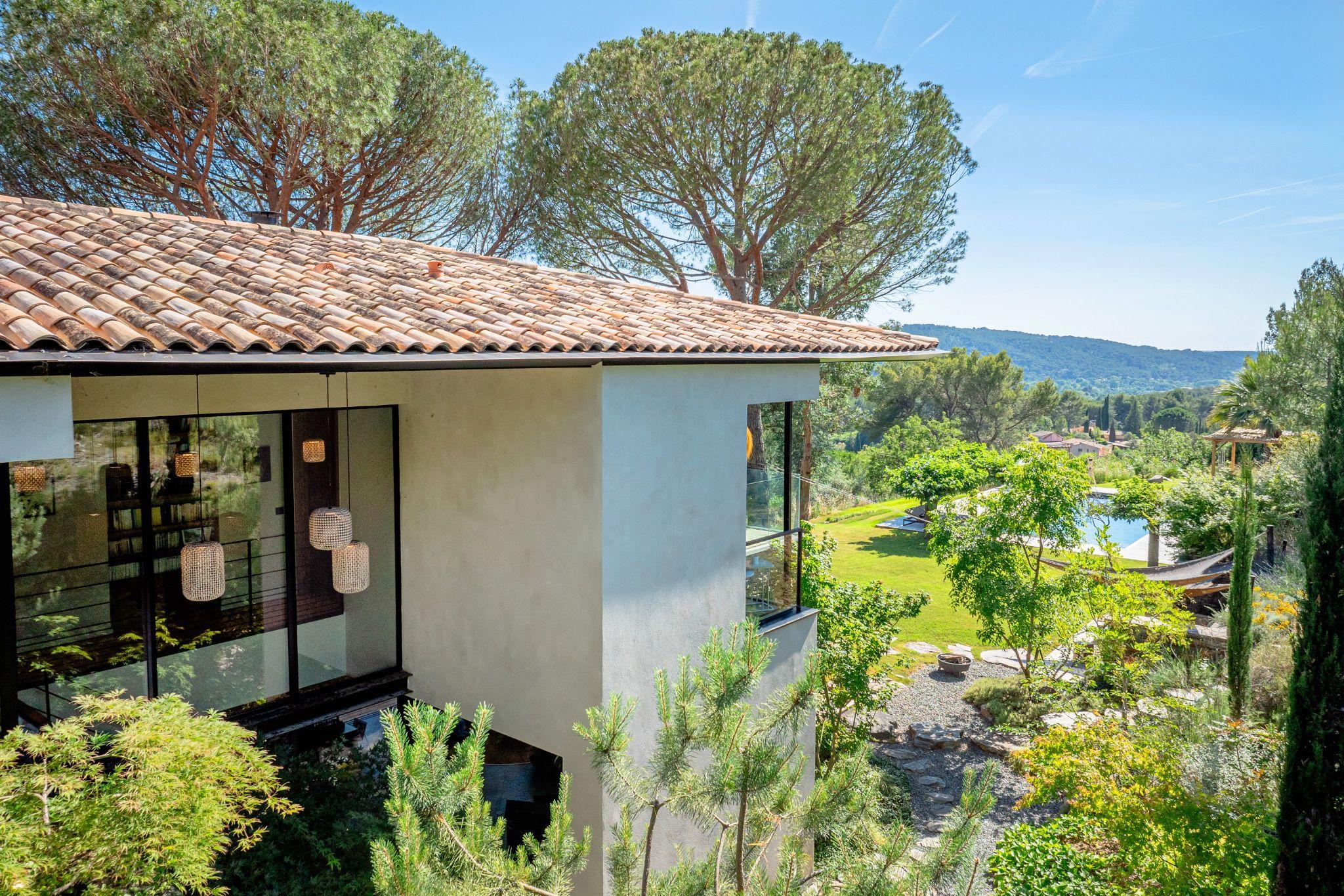 Mái dốc và đường viền thấp giúp công trình nằm gọn trong địa hình đồi Provence. Từ đây, tầm nhìn mở rộng ra cảnh quan xa, giữ sự kết nối liên tục với thiên nhiên