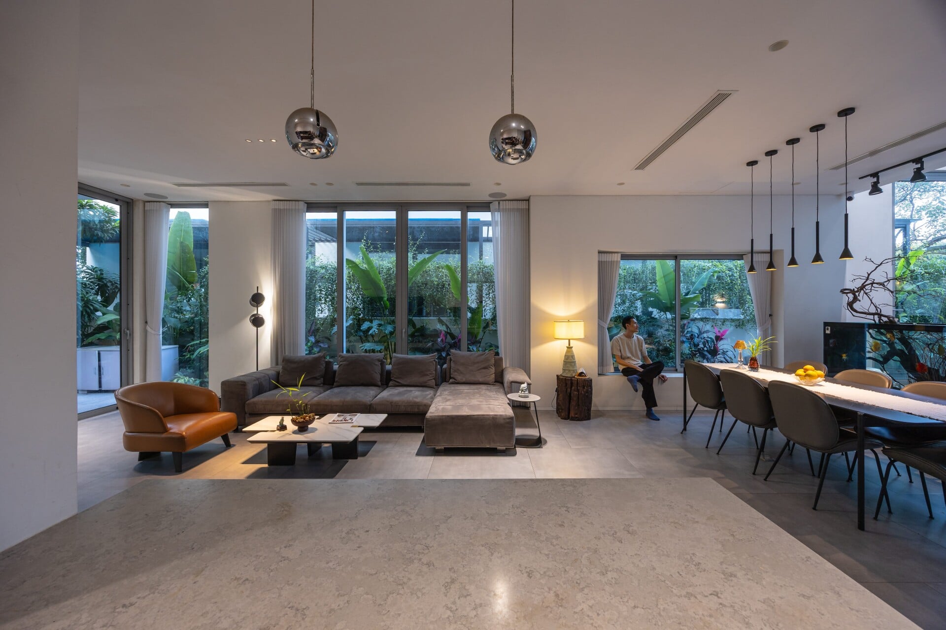 Với thiết kế này, ranh giới giữa trong và ngoài được xóa mờ khiến cảm nhận về chiều sâu dường như lớn hơn thông qua thủ pháp kéo dãn không gian, tạo điều kiện cho thiên nhiên trở thành một phần của đời sống thường nhật.