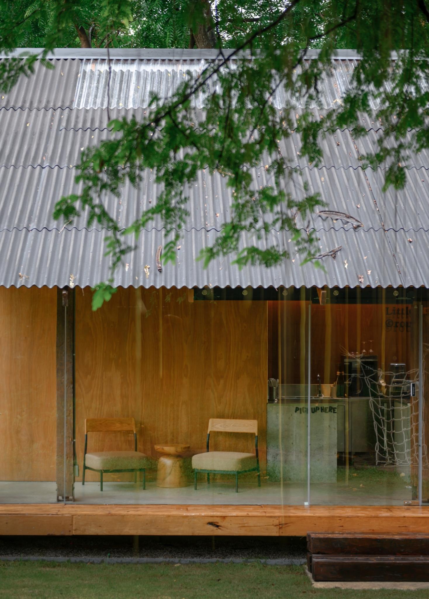 Little Ground Common Space không được thiết kế như một quán cà phê đóng kín. Hàng rào xung quanh có độ hở vừa phải, liên kết thị giác với không gian công cộng lân cận. Trẻ em có thể chơi ngoài sân, người lớn ngồi trò chuyện, làm việc hoặc đơn giản là nghỉ ngơi dưới tán cây.