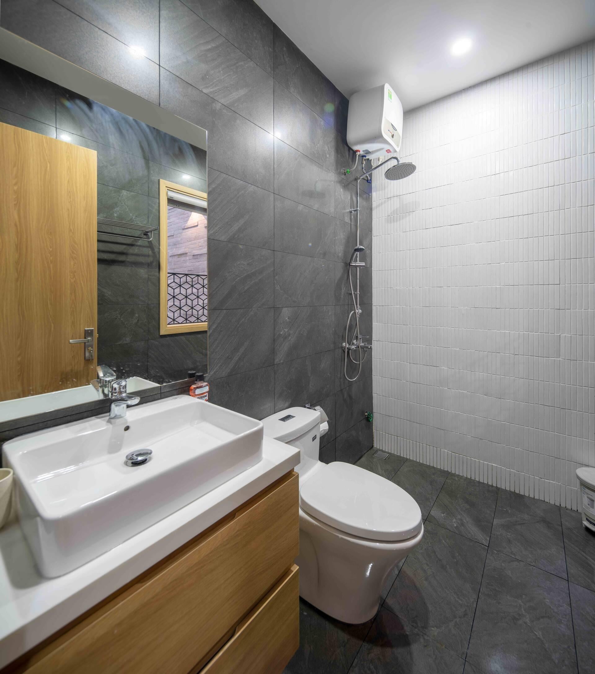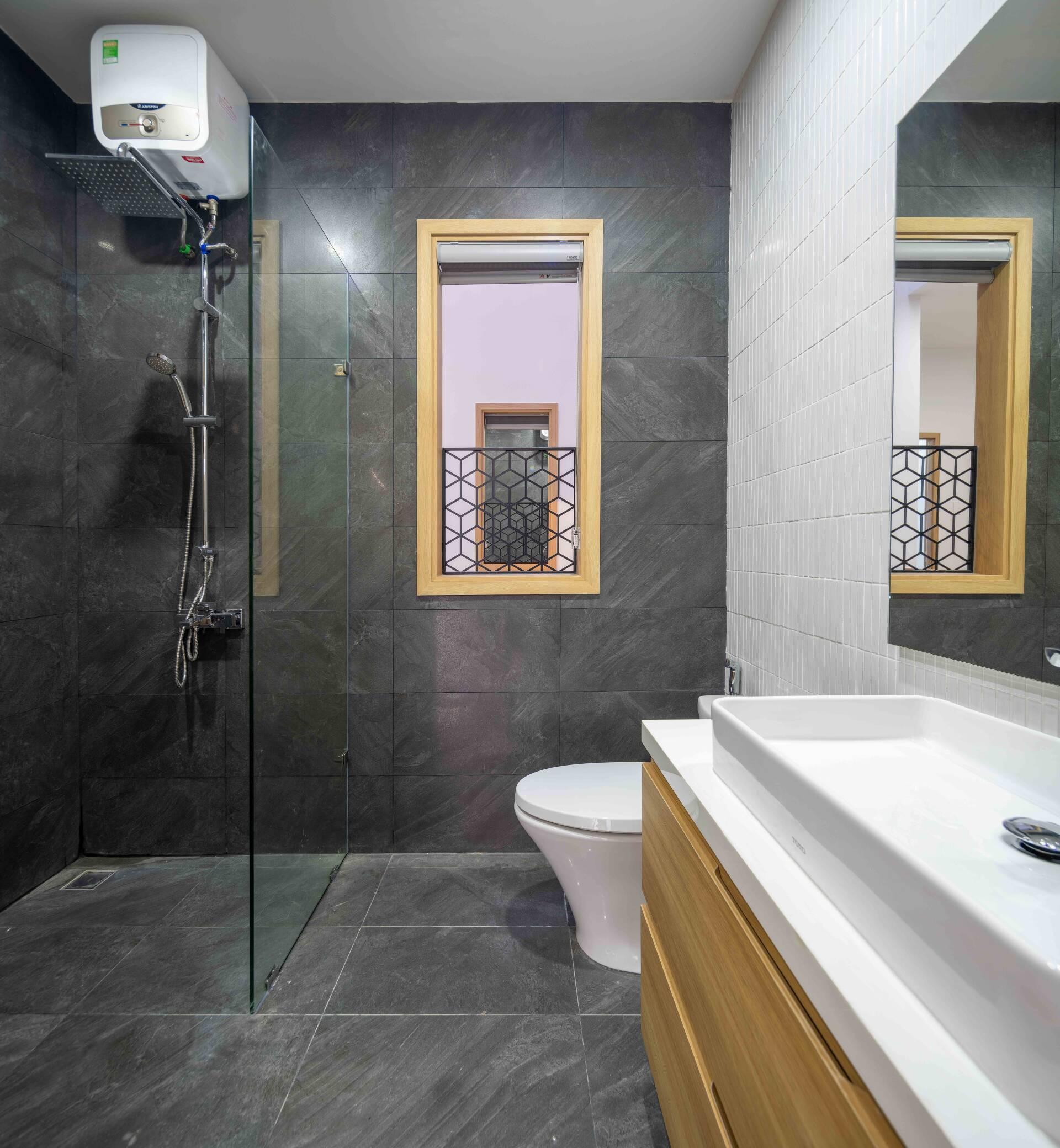 Phòng vệ sinh trong phòng ngủ master được bố trí đơn giản, tiện nghi