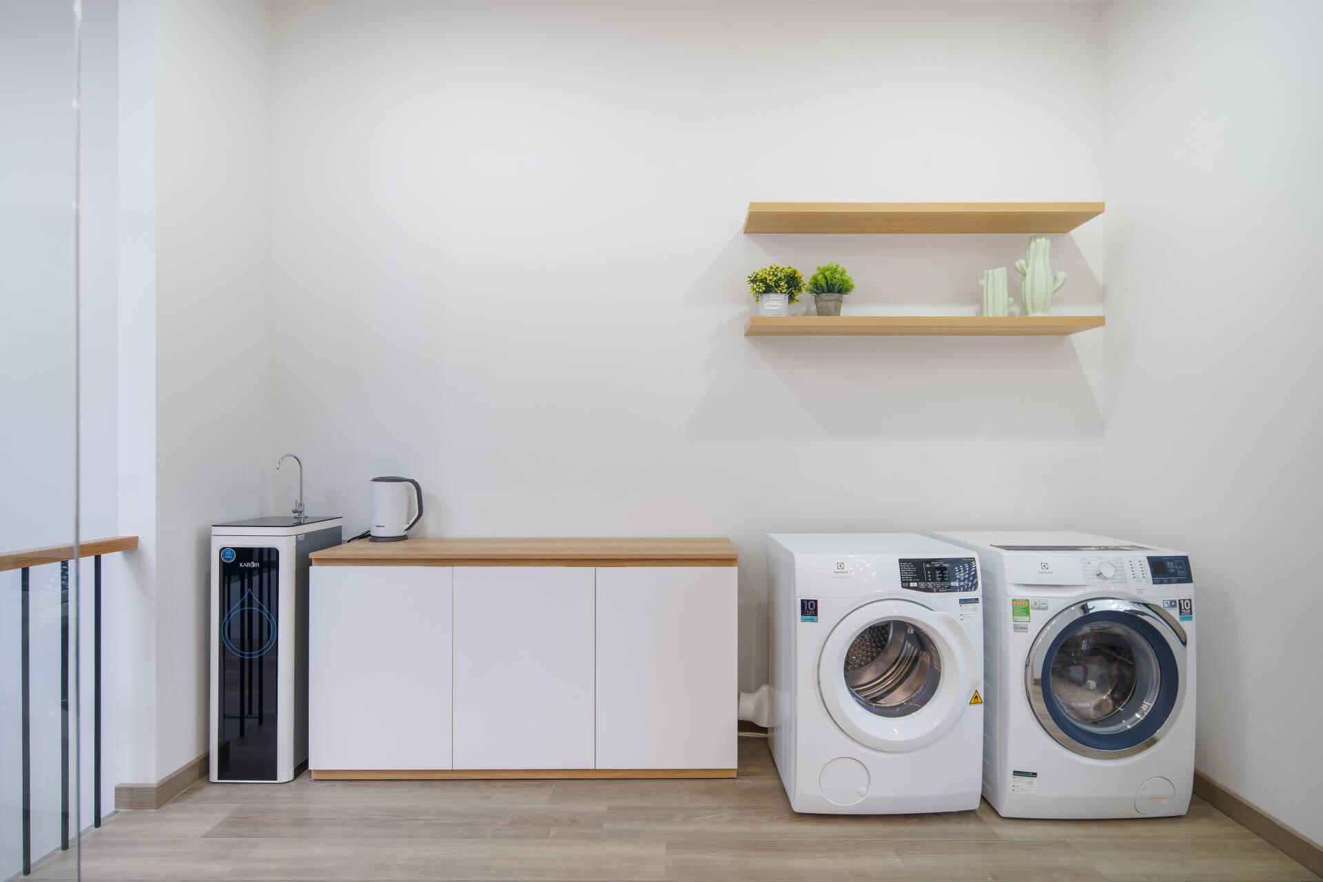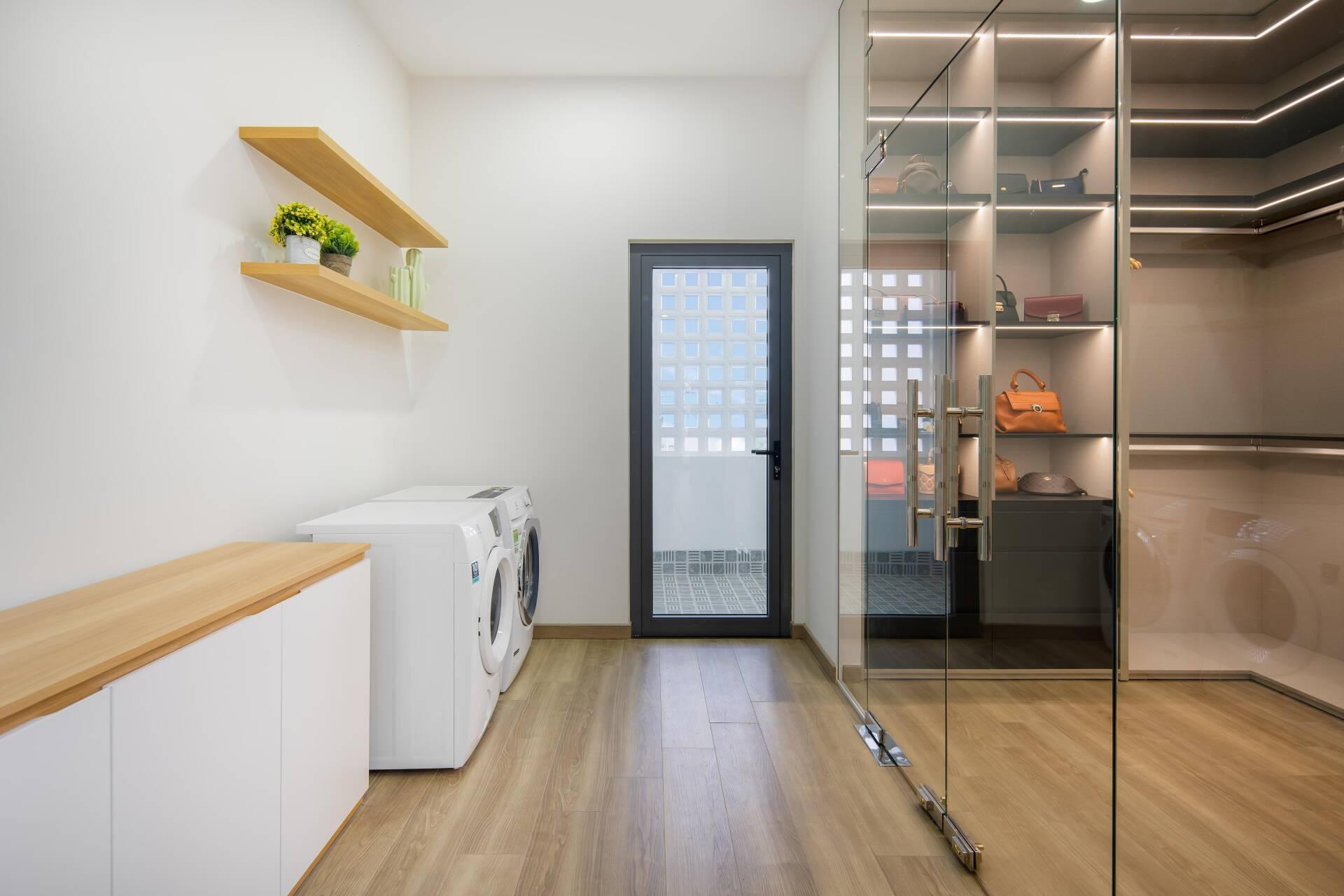 Phòng giặt - sấy tiện nghi, bài trí đơn giản, đối diện là phòng thay đồ của gia chủ