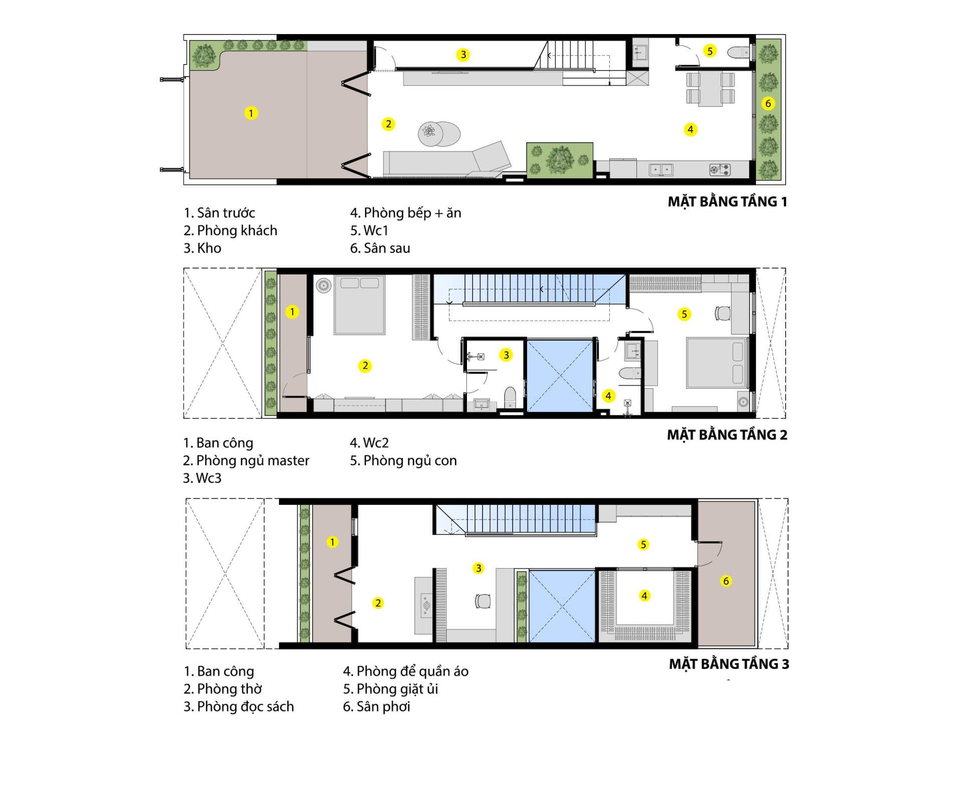 Giữ tầng 1 thông suốt, loại bỏ phòng ngủ để tăng sự thông thoáng cho nhà ống 5x20