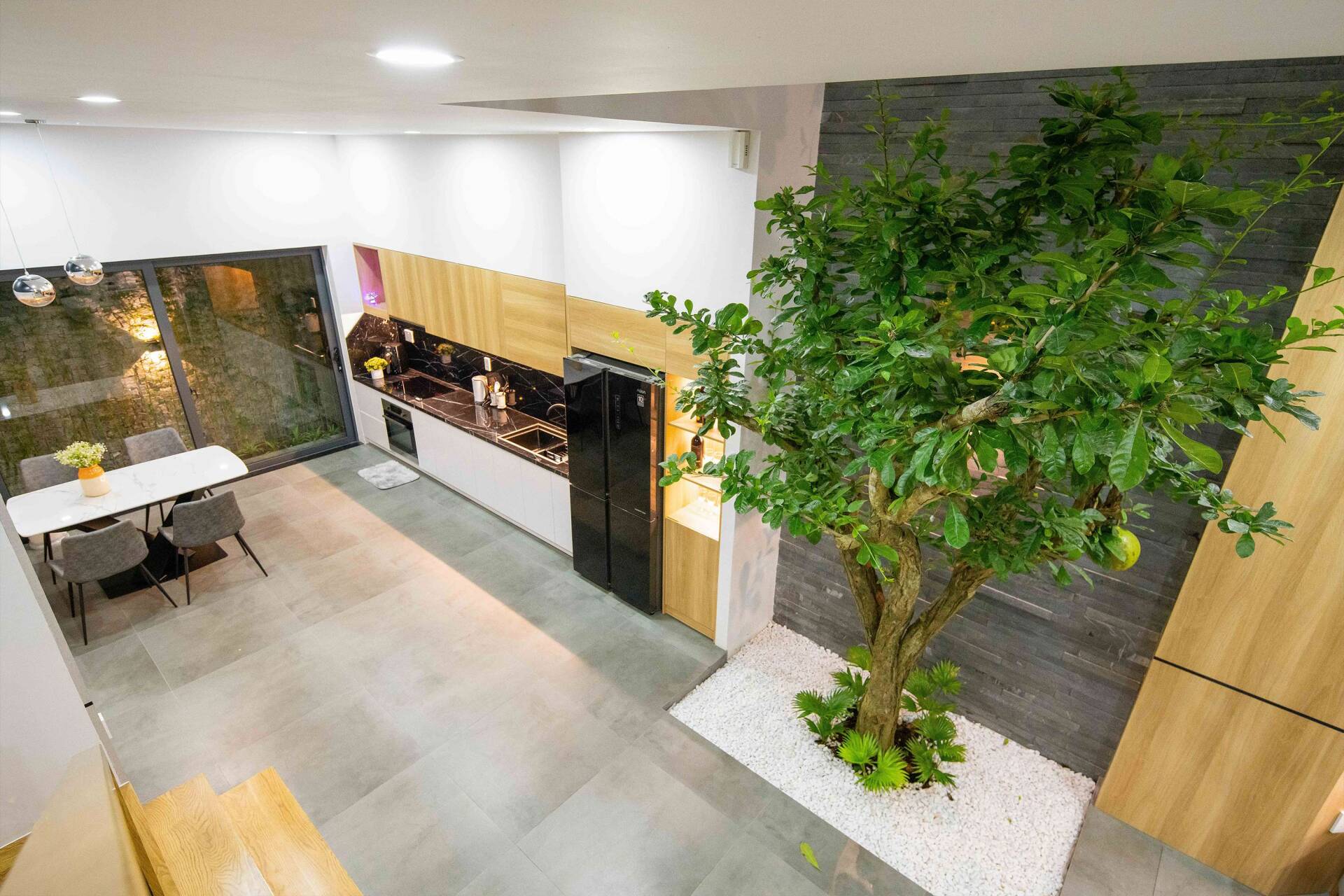 Bên dưới khoảng thông tầng còn được trồng cây xanh giúp thanh lọc không khí hiệu quả