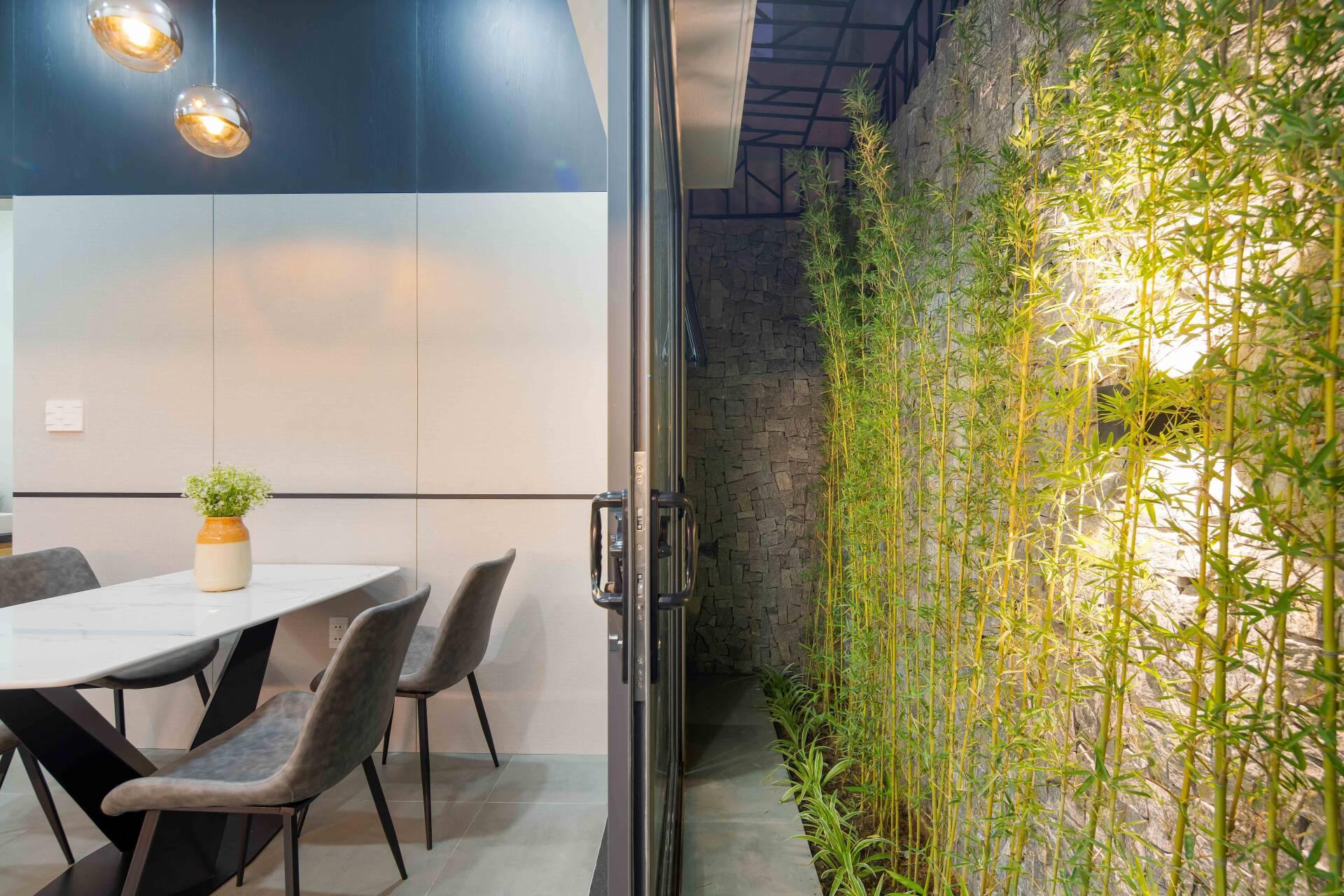 Bố trí sân sau sát bếp để tăng nguồn sáng và tạo khoảng xanh cho nhà phố.
