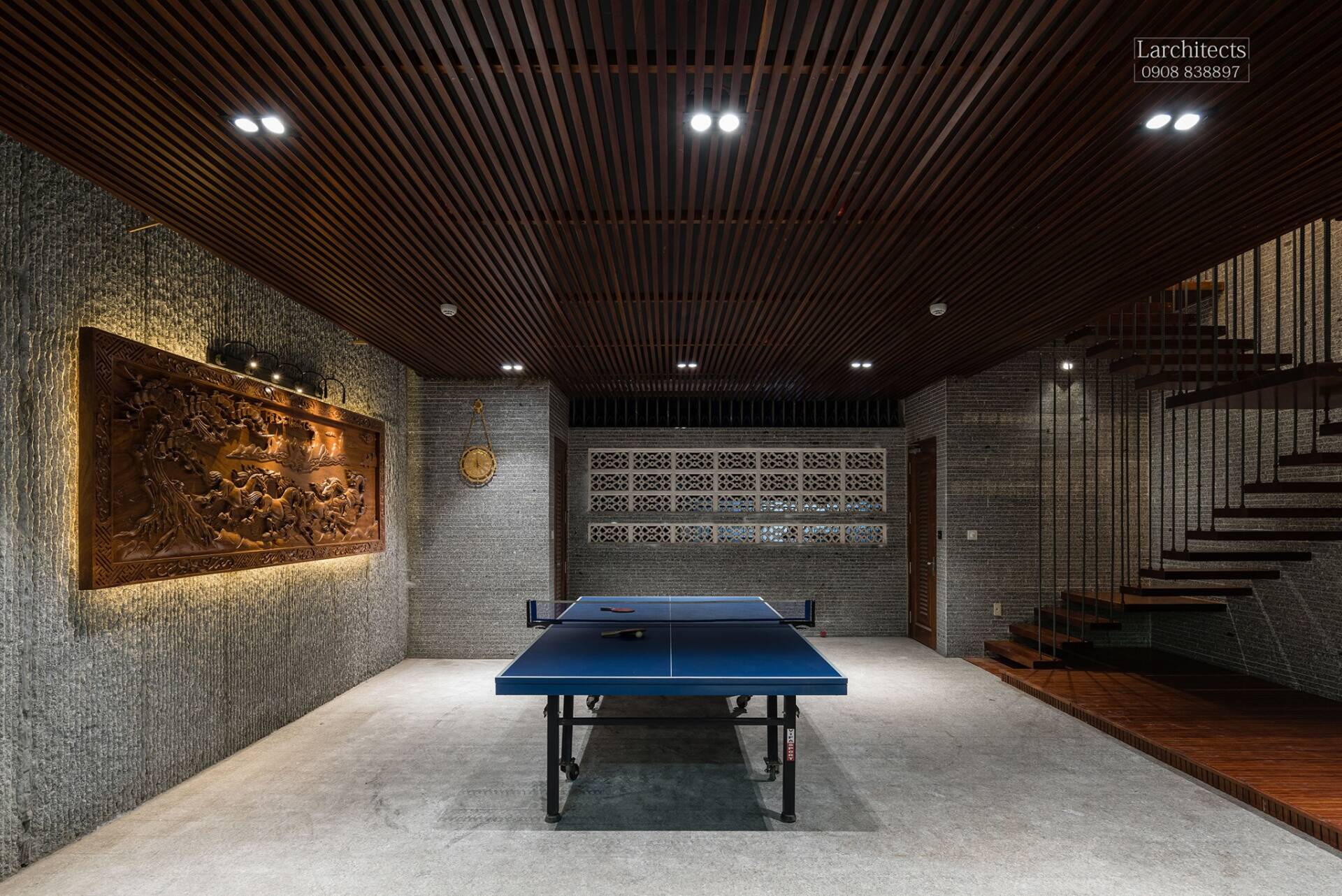 Không gian đậm nét hoài cổ với 2 gam màu nâu gỗ và xám. Các chất liệu nội thất cũng được khéo léo lựa chọn theo 2 gam màu đó để tạo sự đồng nhất